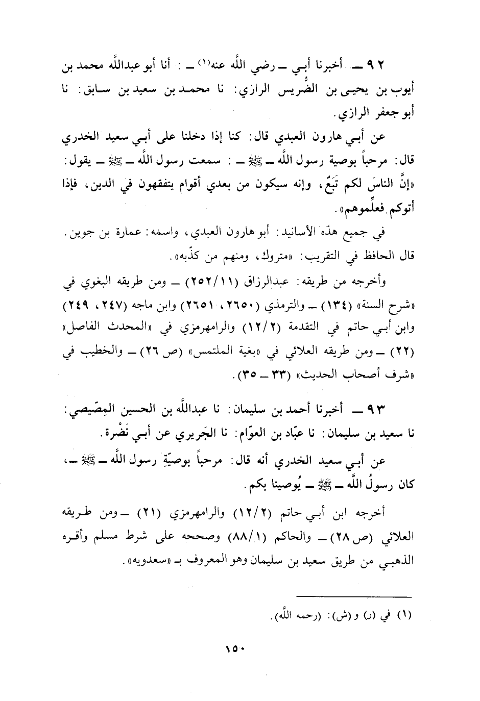93 - أخبرنا أحمد بن سليمان: نا عبد الله بن الحسين المِصّيصي: نا سعيد بن سليمان: نا عبّاد بن العوّام: نا الجَريري عن أبي نَضْرة.