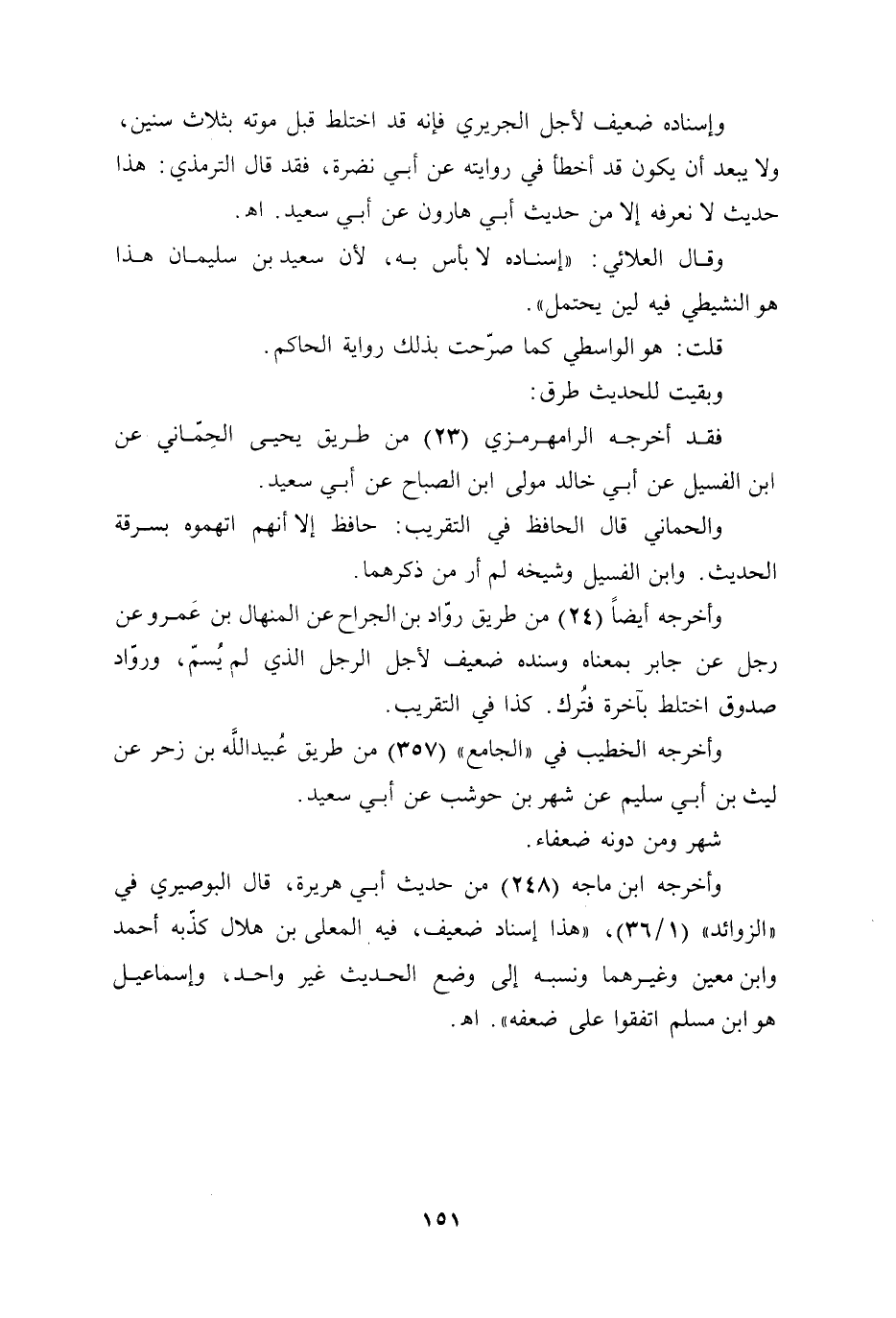 وقال العلائي: "إسناده لا بأس به، لأن سعيد بن سليمان هذا هوالنشيطي فيه لين يحتمل".