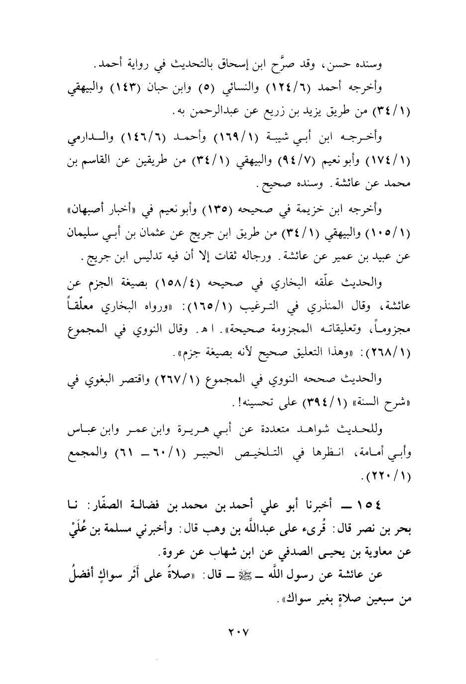 وأخرجه ابن أبي شيبة (1/ 169) وأحمد (6/ 146) والدارمي (1/ 174) وأبو نعيم (7/ 94) والبيهقي (1/ 34) من طريقين عن القاسم بن محمَّد عن عائشة. وسنده صحيح.