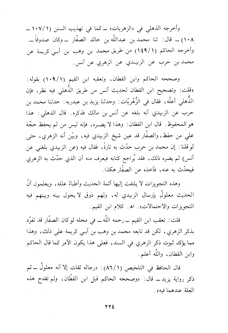 قلت: تعقب ابن القيم -رحمه الله- في محله لوكان الصفّار قد تفرّد بذكر الزهري، لكن قد تابعه محمَّد بن وهب بن أبي كريمة على ذلك، وهذا مما يؤكد ثبوت ذكر الزهري في السند، فعلى هذا يكون الأمر كما قال الحاكم وابن القطان، والله أعلم.