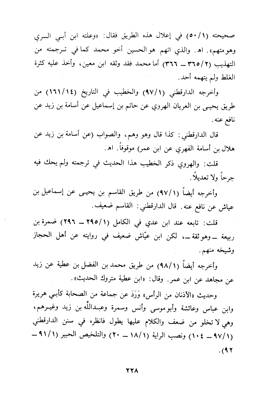 وأخرجه أيضًا (1/ 97) من طريق القاسم بن يحيى عن إسماعيل بن عياش عن نافع عنه. قال الدارقطني: القاسم ضعيف.