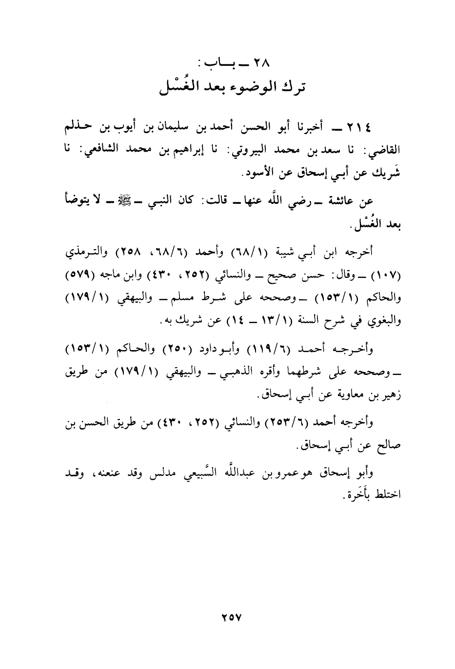 214 - أخبرنا أبو الحسن أحمد بن سليمان بن أيوب بن حذلم القاضي: نا سعد بن محمَّد البيروتي: نا إبراهيم بن محمَّد الشافعي: نا شَريك عن أبي إسحاق عن الأسود.
