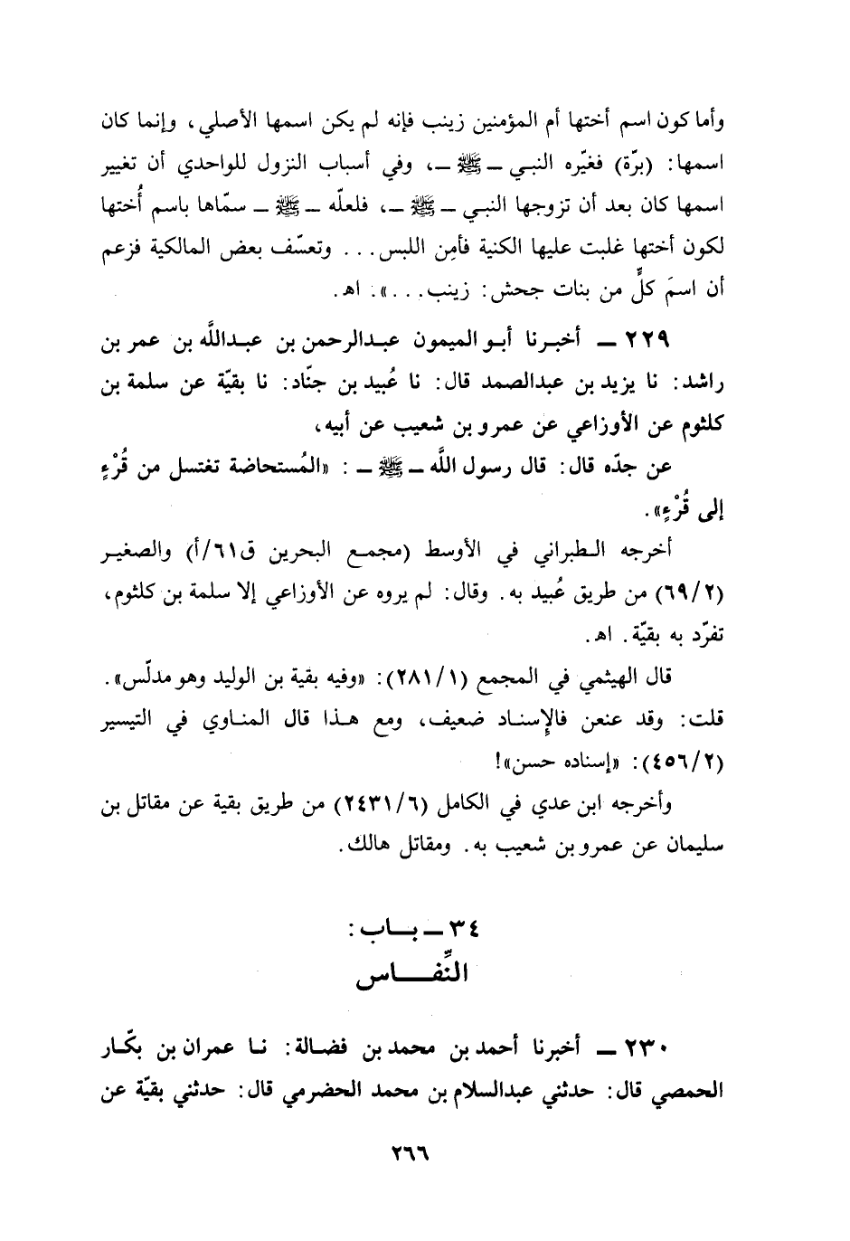 230 - أخبرنا أحمد بن محمد بن فضالة: نا عمران بن بكّار الحمصي قال: حدثني عبد السلام بن محمَّد الحضرمي قال: حدثني بقيَّة عن