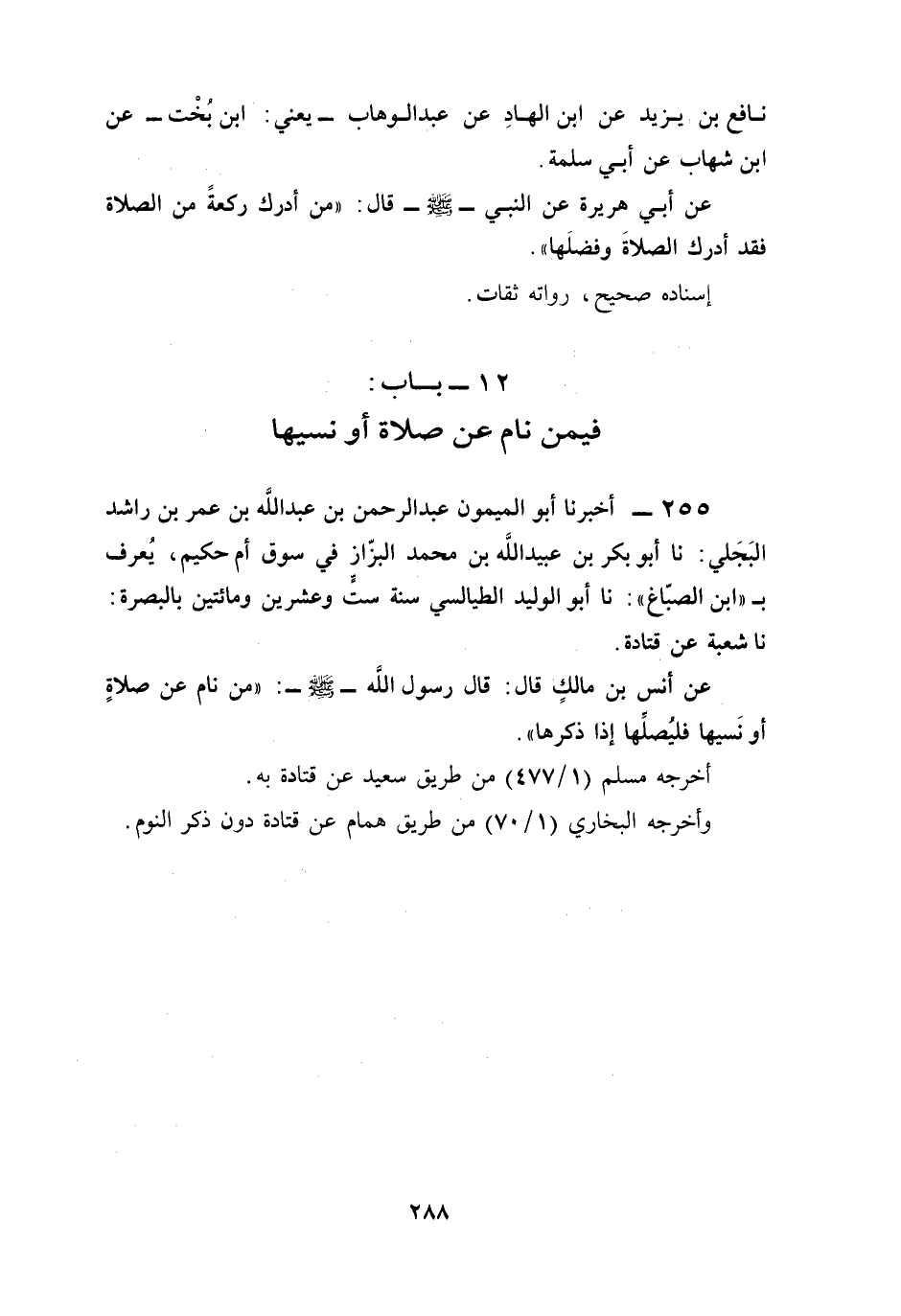 12 - باب: فيمن نام عن صلاة أو نسيها