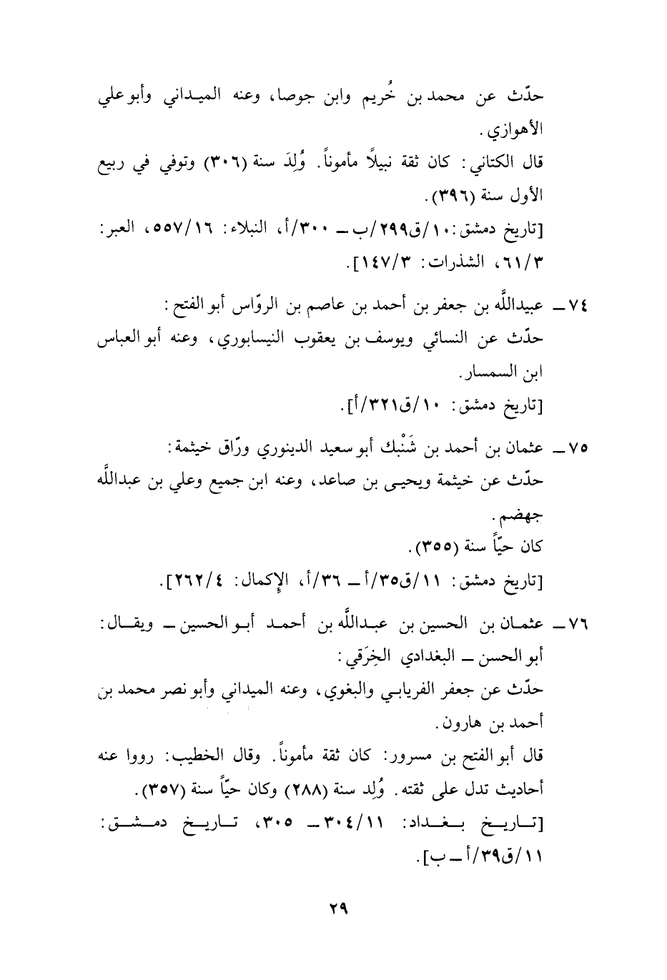 74 - عبيد الله بن جعفر بن أحمد بن عاصم بن الروّاس أبو الفتح: