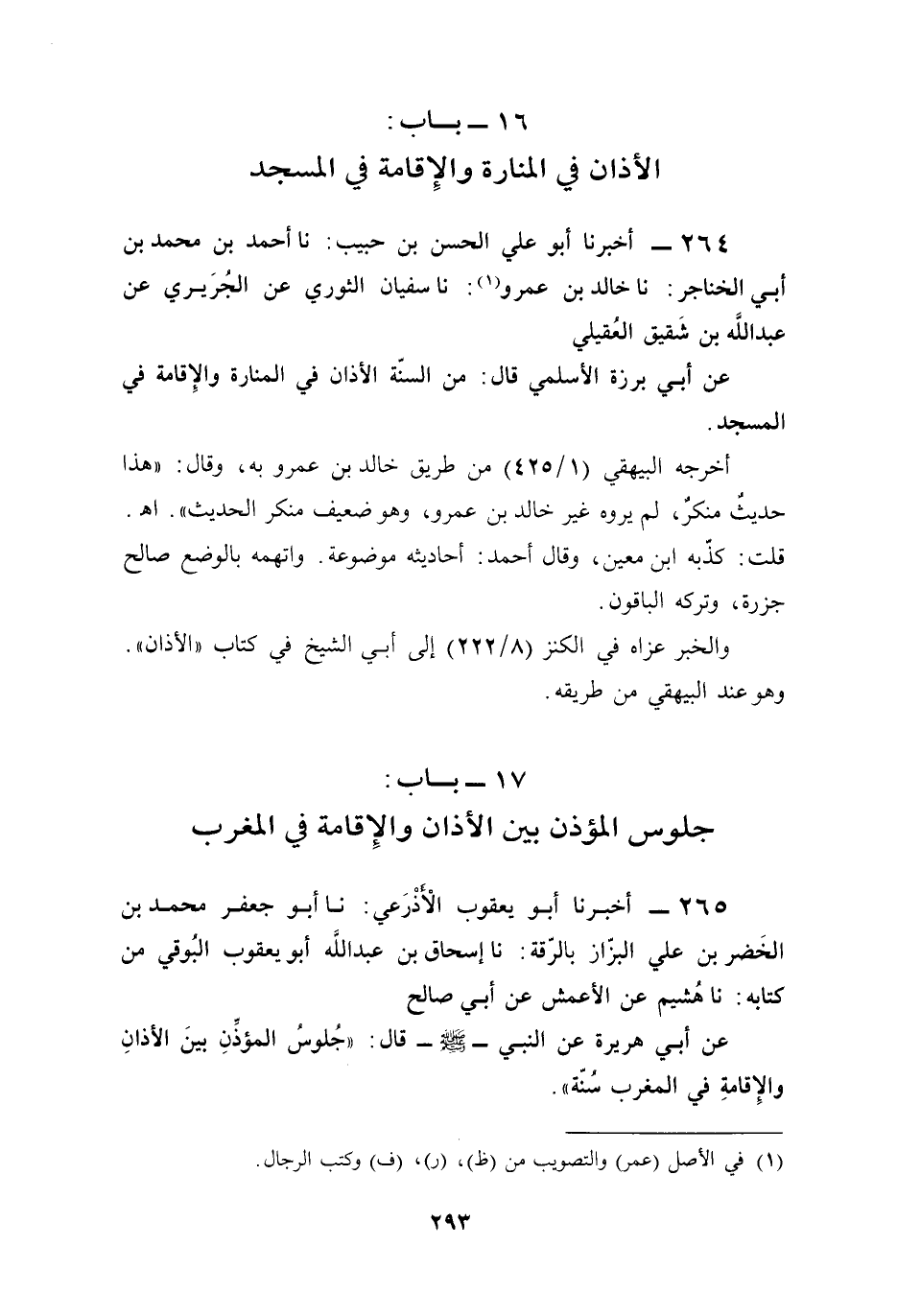 264 - أخبرنا أبو علي الحسن بن حبيب: نا أحمد بن محمد بن أبي الخناجر: نا خالد بن عمرو (¬1): نا سفيان الثوري عن الجُرَيري عن عبد الله بن شَقيق العُقيلي