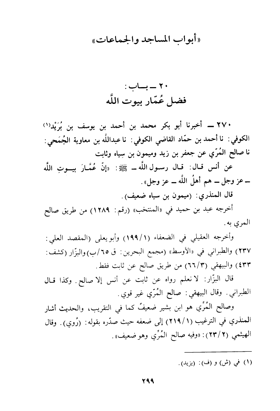 عن أنس قال: قال رسول الله - صلى الله عليه وسلم -: "إنّ عُمَّارَ بيوتِ الله -عَزَّ وَجَلَّ- هم أهلُ الله- عَزَّ وَجَلَّ".