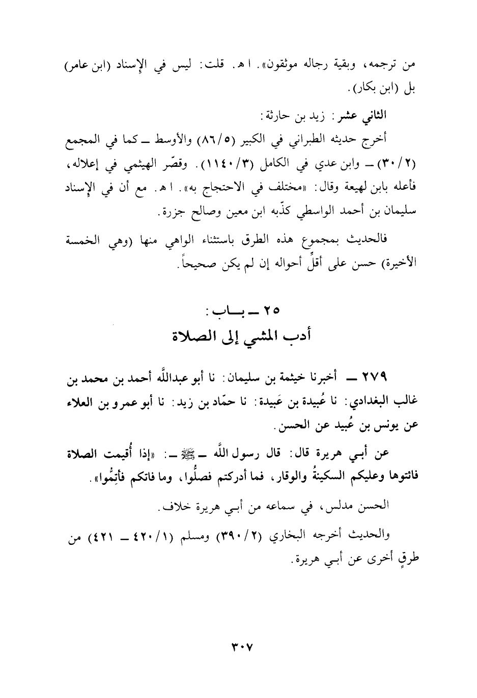 279 - أخبرنا خيثمة بن سليمان: نا أبو عبد الله أحمد بن محمَّد بن غالب البغدادي: نا عُبيدة بن عَبيدة: نا حماد بن زيد: نا أبو عمرو بن العلاء عن يونس بن عُبيد عن الحسن.