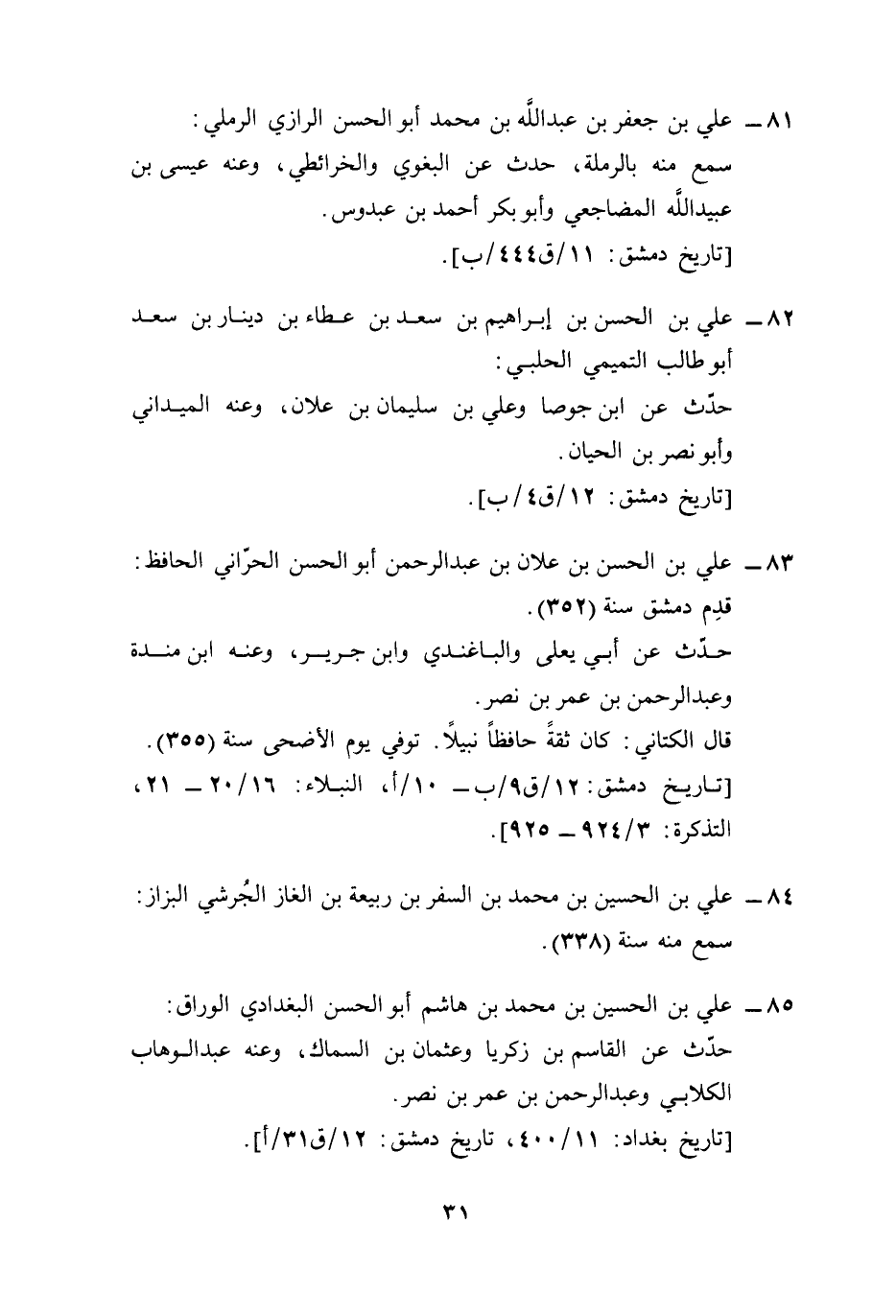 81 - علي بن جعفر بن عبد الله بن محمَّد أبو الحسن الرازي الرملي: