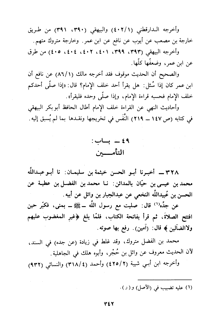 وأحاديث النهي عن القراءة خلف الإِمام أطال الحافظ أبو بكر البيهقي في كتابه (ص 147 - 219) النَّفَس في تخريجها ونقدها بما لم يُسبق إليه.