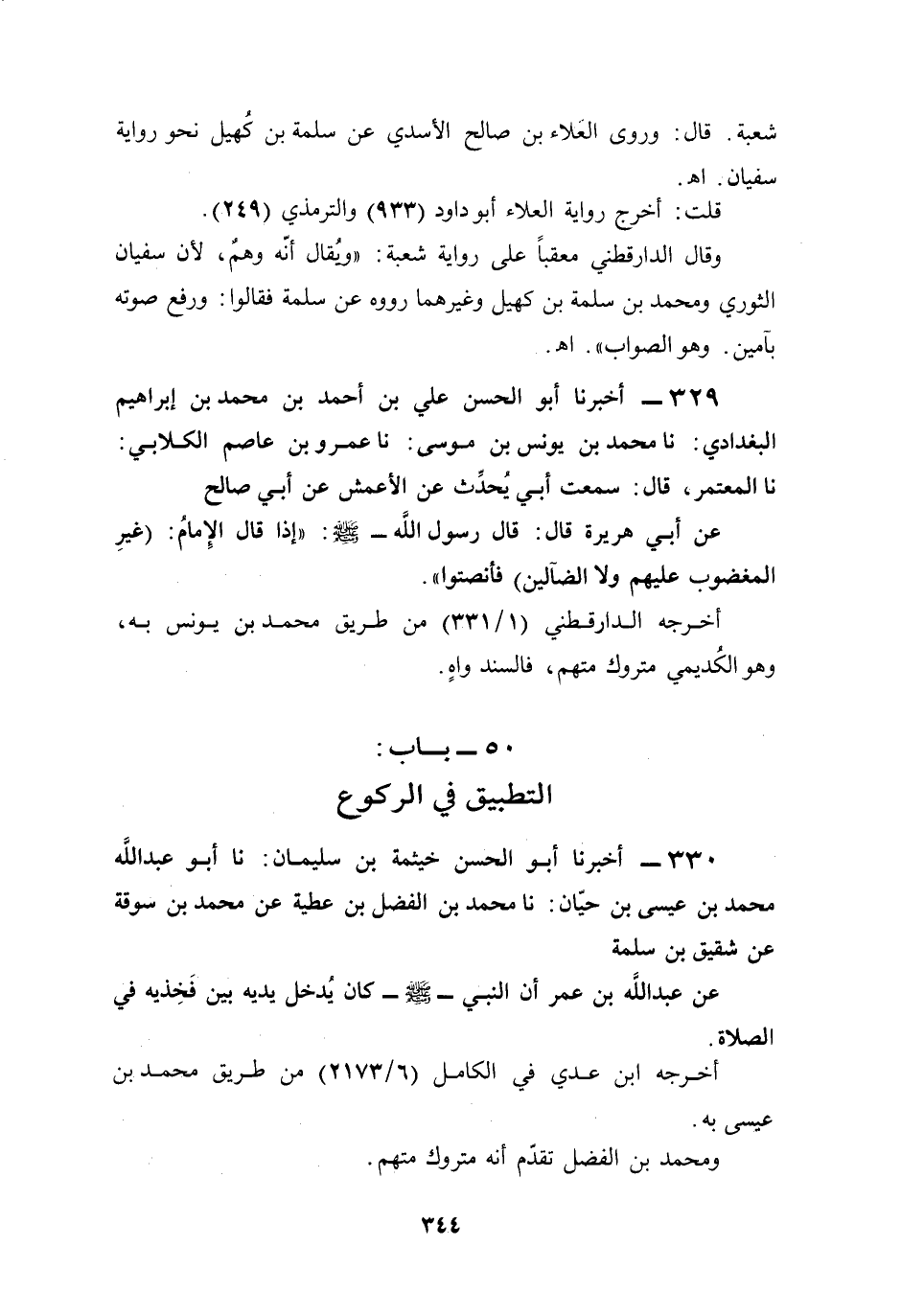 329 - أخبرنا أبو الحسن علي بن أحمد بن محمد بن إبراهيم البغدادي: نا محمد بن يونس بن موسى: نا عمرو بن عاصم الكلابي: نا المعتمر، قال: سمعت أبي يُحدِّث عن الأعمش عن أبي صالح