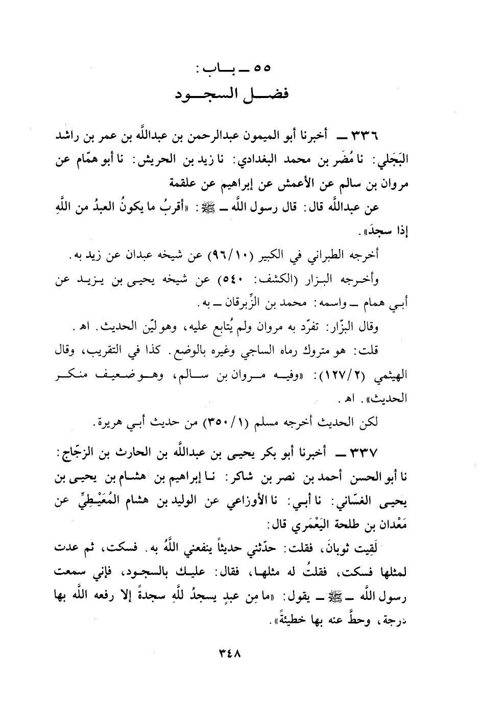 336 - أخبرنا أبو الميمون عبد الرحمن بن عبد الله بن عمر بن راشد البَجَلي: نا مُضَر بن محمد البغدادي: نا زيد بن الحريش. نا أبو همّام عن مروان بن سالم عن الأعمش عن إبراهيم عن علقمة
