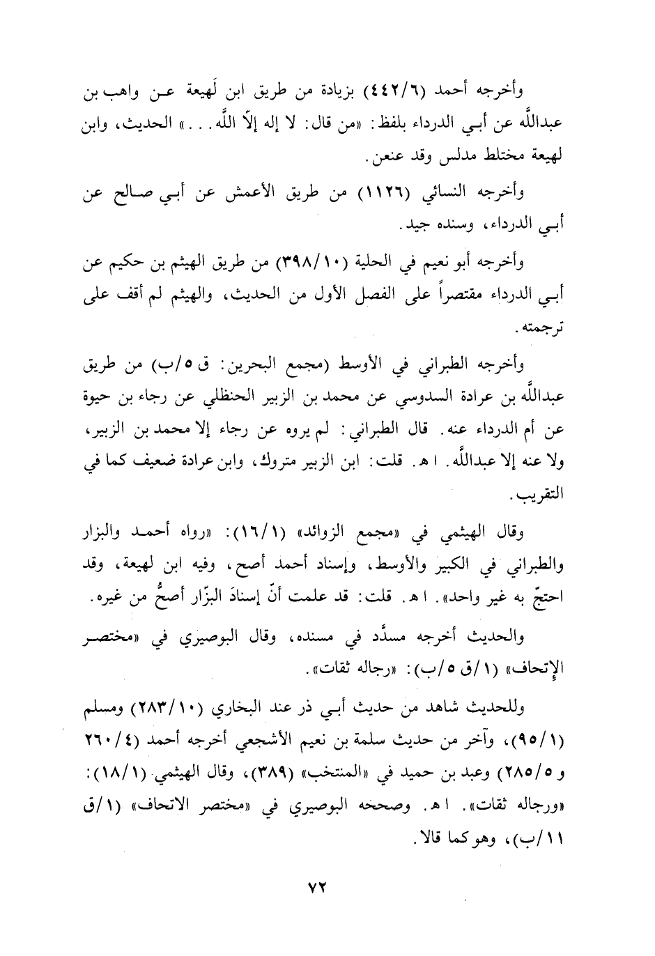 وقال الهيثمي في "مجمع الزوائد" (1/ 16): "رواه أحمد والبزار والطبراني في الكبير والأوسط، وإسناد أحمد أصح، وفيه ابن لهيعة، وقد احتجّ به غير واحد" أهـ. قلت: قد علمت أنّ إسنادَ البزّار أصحُّ من غيره.