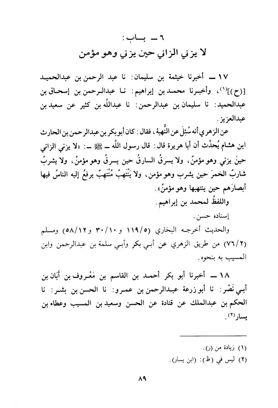 6 - باب: لا يزني الزاني حين يزني وهو مؤمن