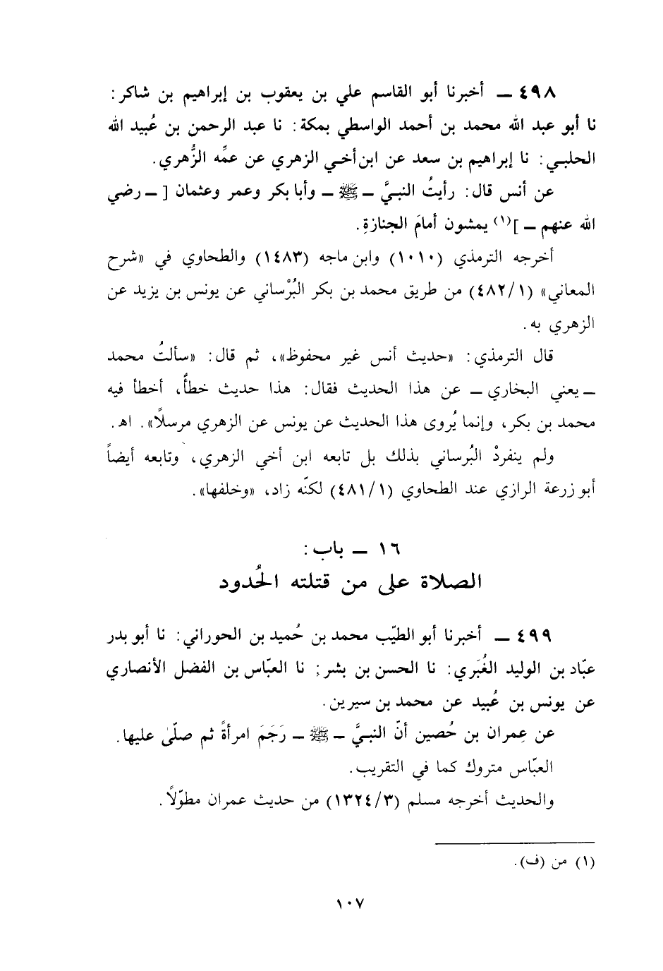 499 - أخبرنا أبو الطيّب محمَّد بن حُميد بن الحوراني: نا أبو بدر عبّاد بن الوليد الغُبَري: نا الحسن بن بشر: نا العبَاس بن الفضل الأنصاري عن يونس بن عُبيد عن محمد بن سيرين.
