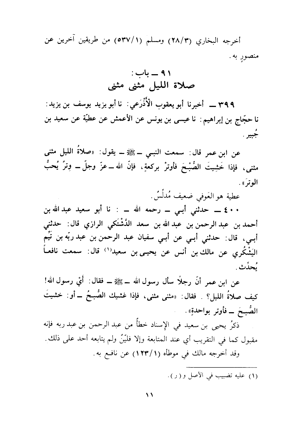 91 - باب: صلاة الليل مثنى مثنى