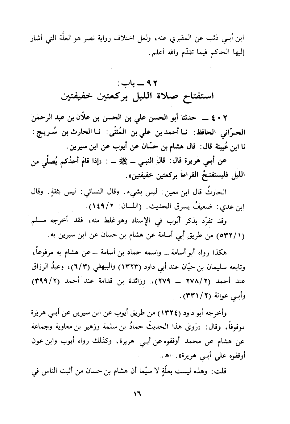 402 - حدثنا أبو الحسن علي بن الحسن بن علاّن بن عبد الرحمن الحرّاني الحافظ: نا أحمد بن علي بن المُثنّى: نا الحارث بن سُريج: نا ابن عُيينة قال: قال هشام بن حسّان عن أيوب عن ابن سيرين.
