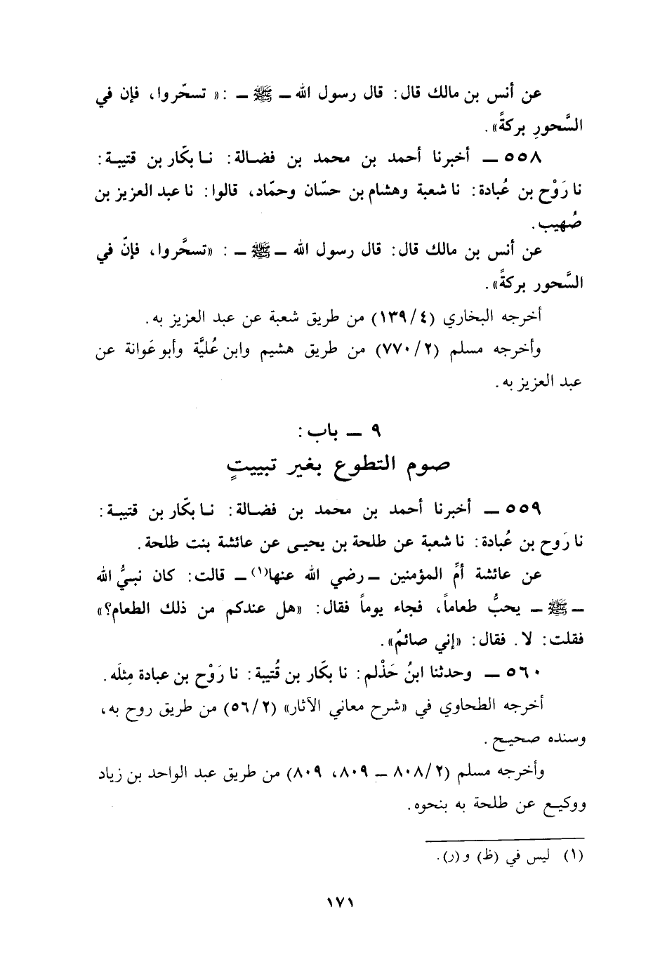 559 - أخبرنا أحمد بن محمد بن فضالة: نا بكّار بن قتيبة: نا رَوح بن عُبادة: نا شعبة عن طلحة بن يحيى عن عائشة بنت طلحة.