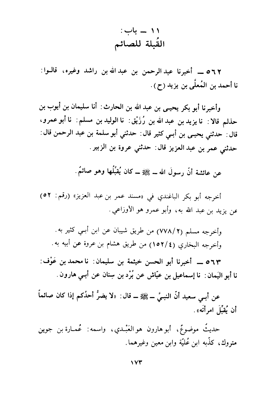 563 - أخبرنا أبو الحسن خيثمة بن سليمان: نا محمد بن عَوْف: نا أبو اليَمان: نا إسماعيل بن عيّاش عن بُرْد بن سِنان عن أبي هارون.