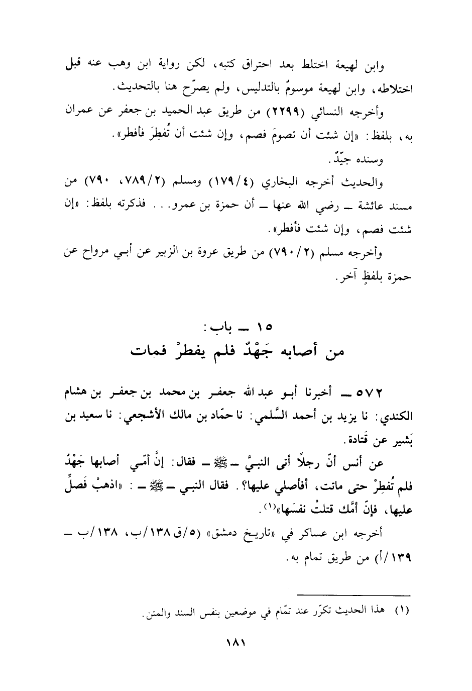 572 - أخبرنا أبو عبد الله جعفر بن محمد بن جعفر بن هشام الكندي: نا يزيد بن أحمد السَّلمي. نا حمّاد بن مالك الأشجعي: نا سعيد بن بَشير عن قَتادة.