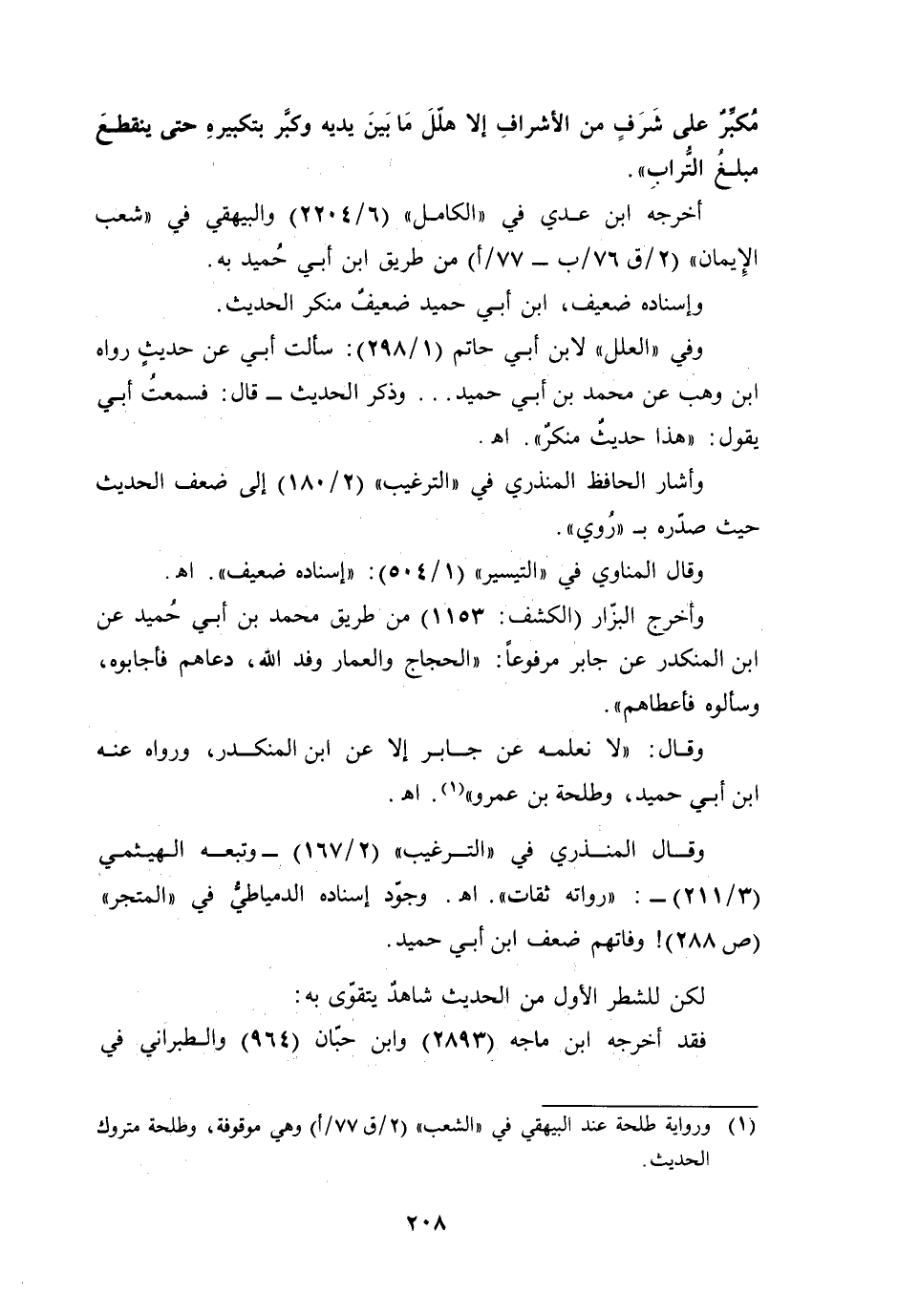 وفي "العلل" لابن أبي حاتم (1/ 298): سألت أبي عن حديثٍ رواه ابن وهب عن محمَّد بن أبي حميد ... وذكر الحديث -قال: فسمعتُ أبي يقول: "هذا حديثٌ منكرٌ". أهـ.