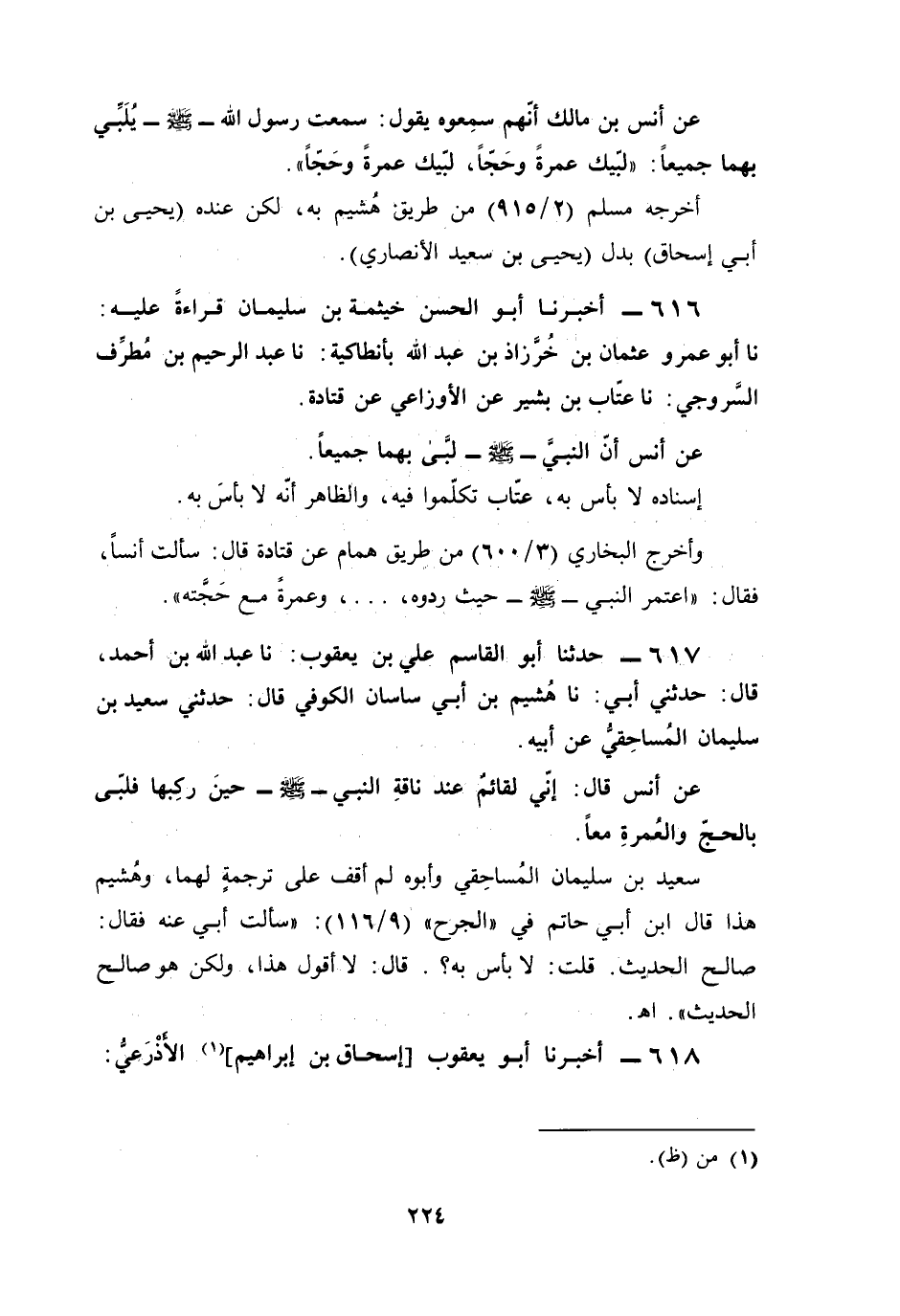 617 - حدثنا أبو القاسم علي بن يعقوب: نا عبد الله بن أحمد، قال: حدثني أبي: نا هُشيم بن أبي ساسان الكوفي قال: حدثني سعيد بن سليمان المُساحِقيُّ عن أبيه.