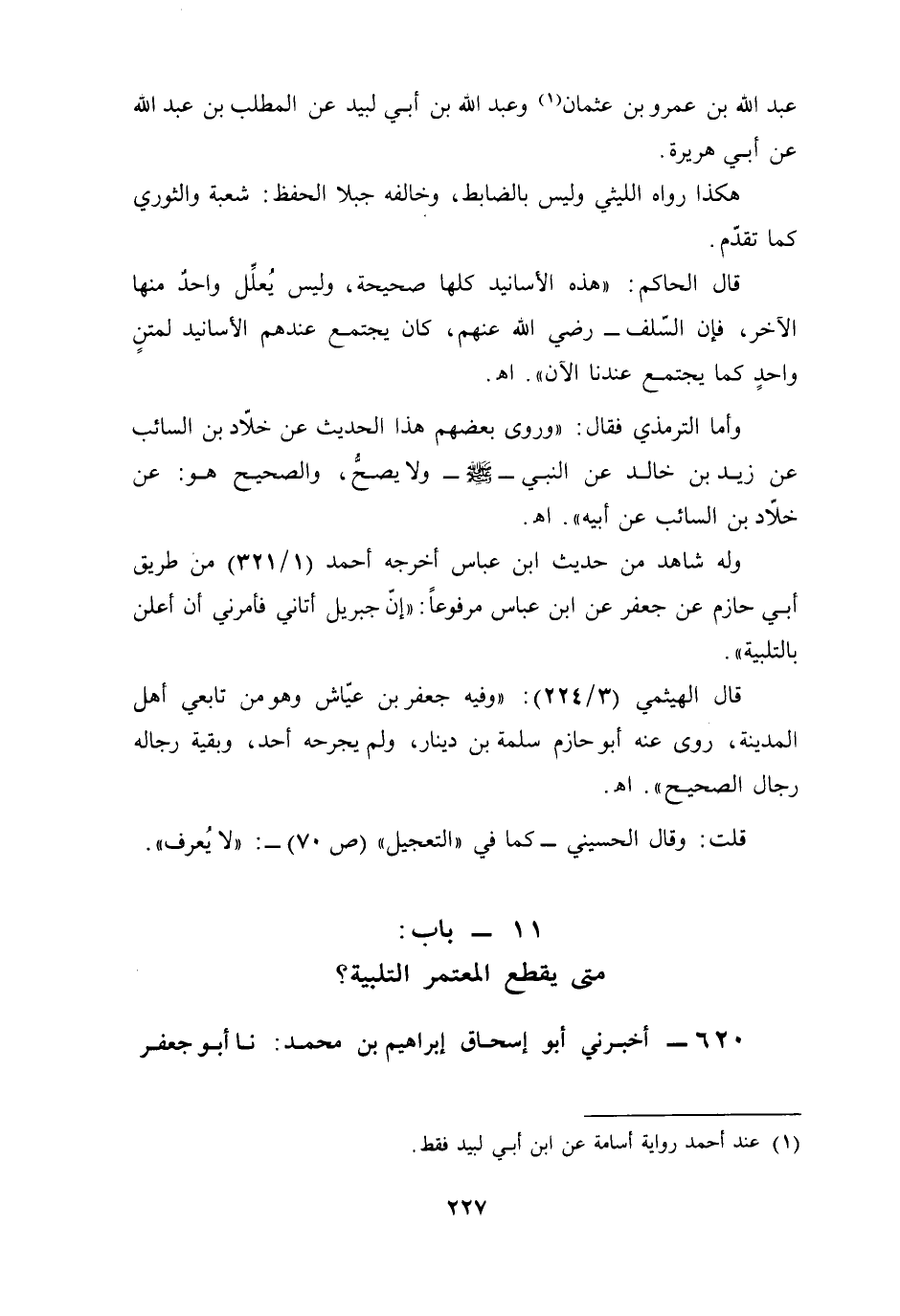 عبد الله بن عمرو بن عثمان (¬1) وعبد الله بن أبي لبيد عن المطلب بن عبد الله عن أبي هريرة.