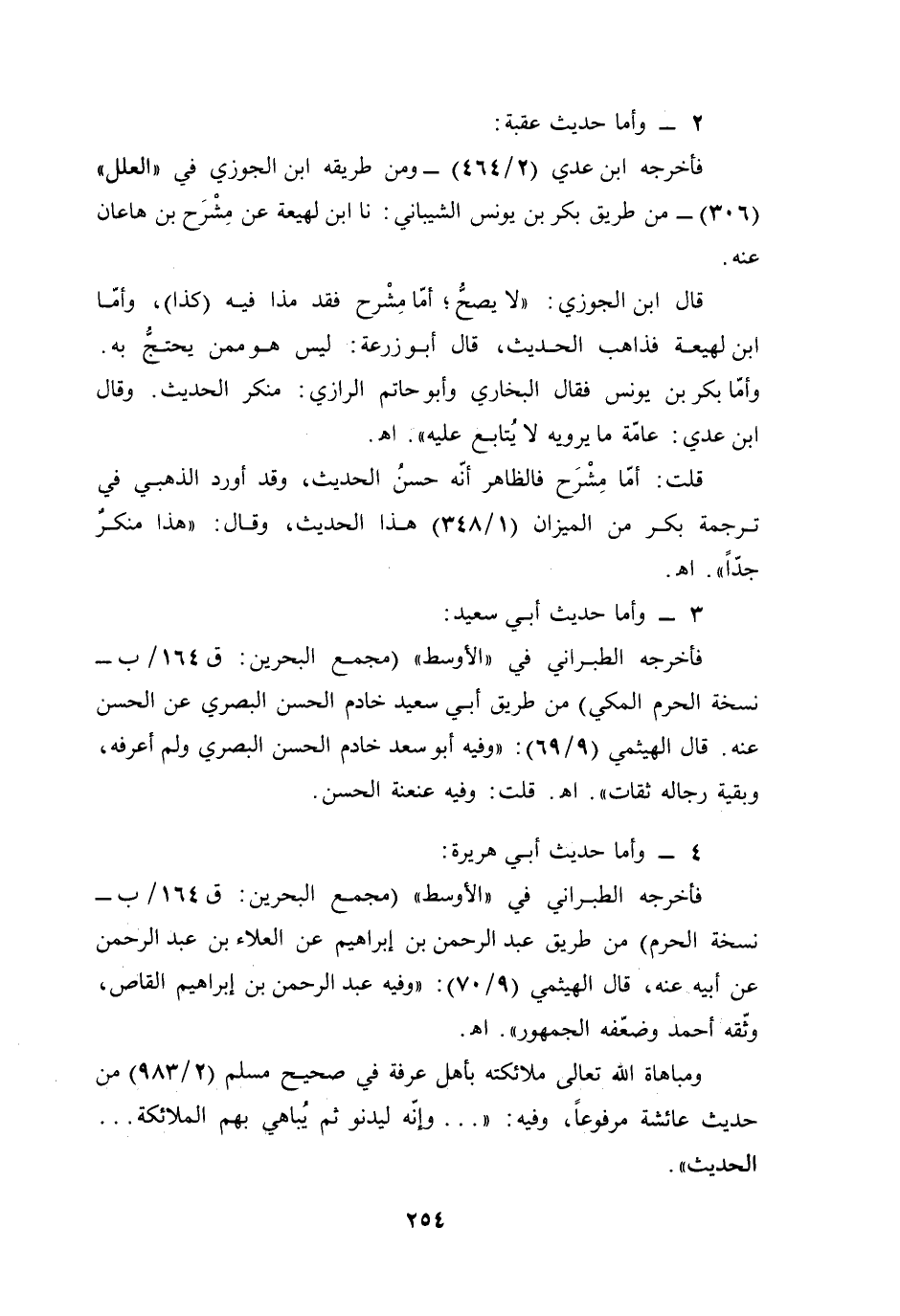 قلت: أمّا مِشْرَح فالظاهر أنه حسنُ الحديث، وقد أورد الذهبي في ترجمة بكر من الميزان (1/ 348) هذا الحديث، وقال: "هذا منكرٌ جدًّا".أهـ.