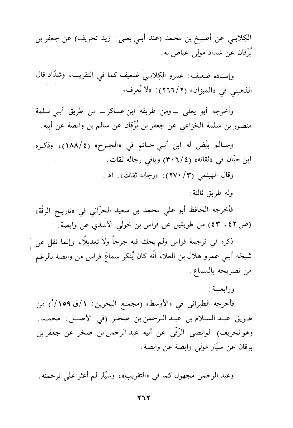 الكِلابي عن أصبغ بن محمَّد (عند أبي يعلى: زيد تحريف) عن جعفر بن بُرْقان عن شداد مولى عياض به.