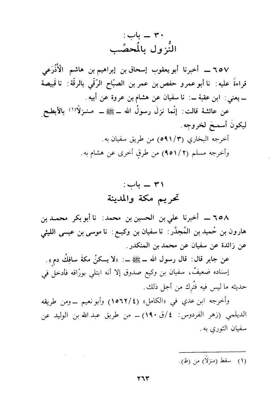 657 - أخبرنا أبو يعقوب إسحاق بن إبراهيم بن هاشم الْأذْرَعي قراءةً عليه: نا أبو عمرو حفص بن عمر بن الصبّاح الرّقّي بالرقّة: نا قَبيصة -يعني: ابن عقبة-. نا سفيان عن هشام بن عروة عن أبيه.