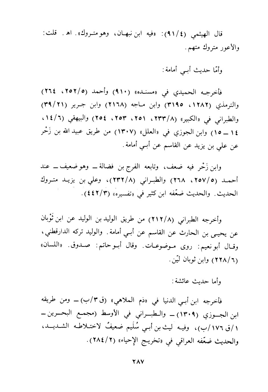فأخرجه الحميدي في "مسنده" (910) وأحمد (5/ 252، 264) والترمذي (1282، 3195) وابن ماجه (2168) وابن جرير (21/ 39) والطبراني في "الكبير" (8/ 233، 251، 253، 254) والبيهقي (6/ 14، 14 - 15) وابن الجوزي في "العلل" (1307) من طريق عبيد الله بن زَحْر عن علي بن يزيد عن القاسم عن أبي أمامة.