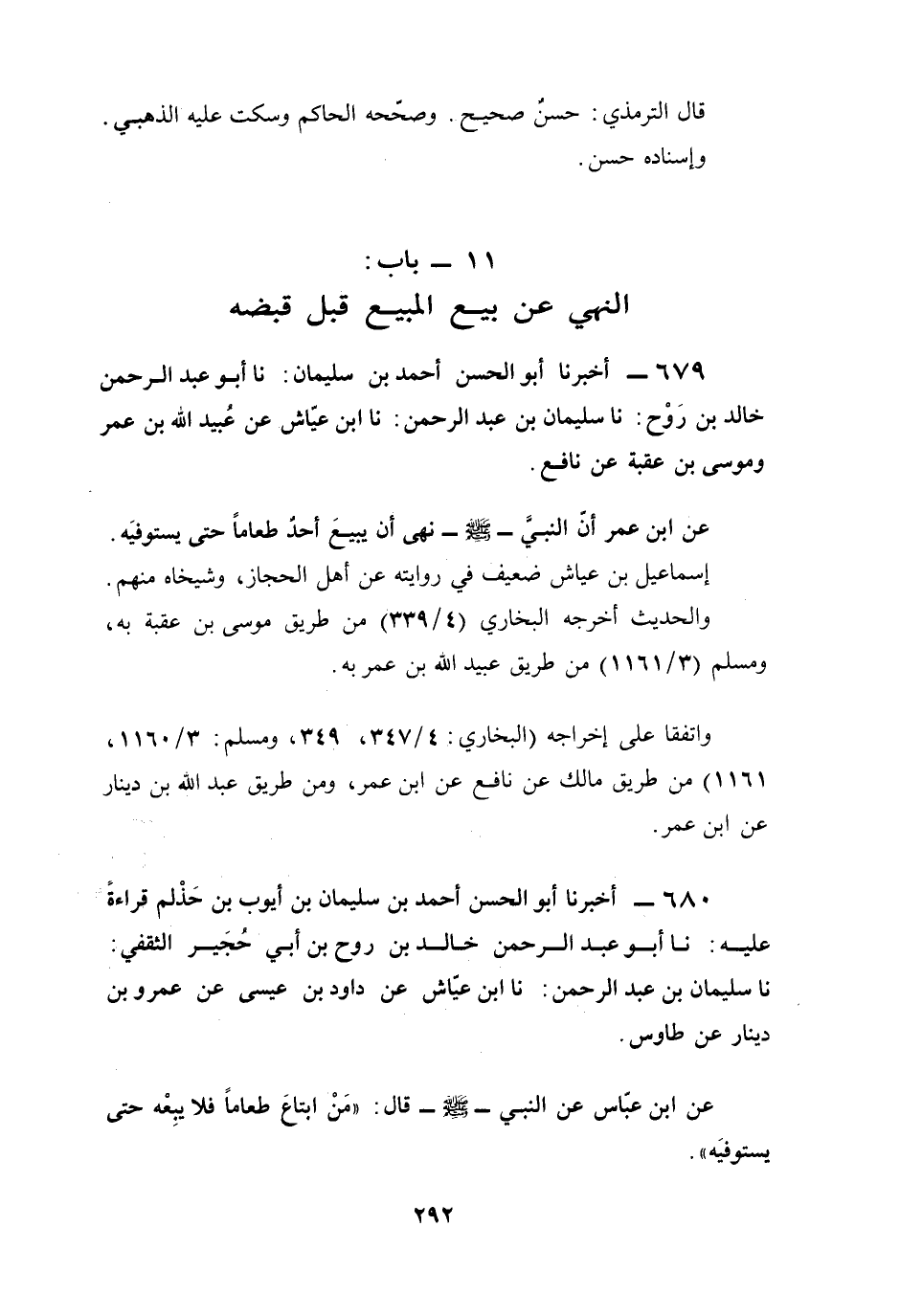 680 - أخبرنا أبو الحسن أحمد بن سليمان بن أيوب بن حَذْلم قراءةً عليه: نا أبو عبد الرحمن خالد بن روح بن أبي حُجَير الثقفي: نا سليمان بن عبد الرحمن: نا ابن عيَّاش عن داود بن عيسى عن عمرو بن دينار عن طاوس.