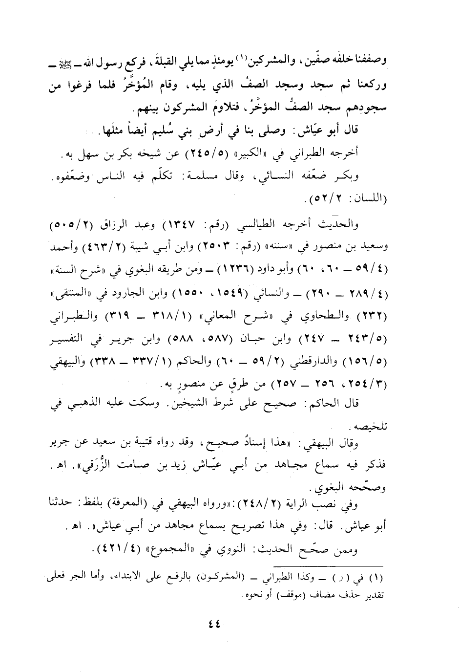 وقال البيهقي. "هذا إسنادٌ صحيح، وقد رواه قتيبة بن سعيد عن جرير فذكر فيه سماع مجاهد من أبي عيّاش زيد بن صامت الزُّرَقي". أهـ. وصحّحه البغوي.