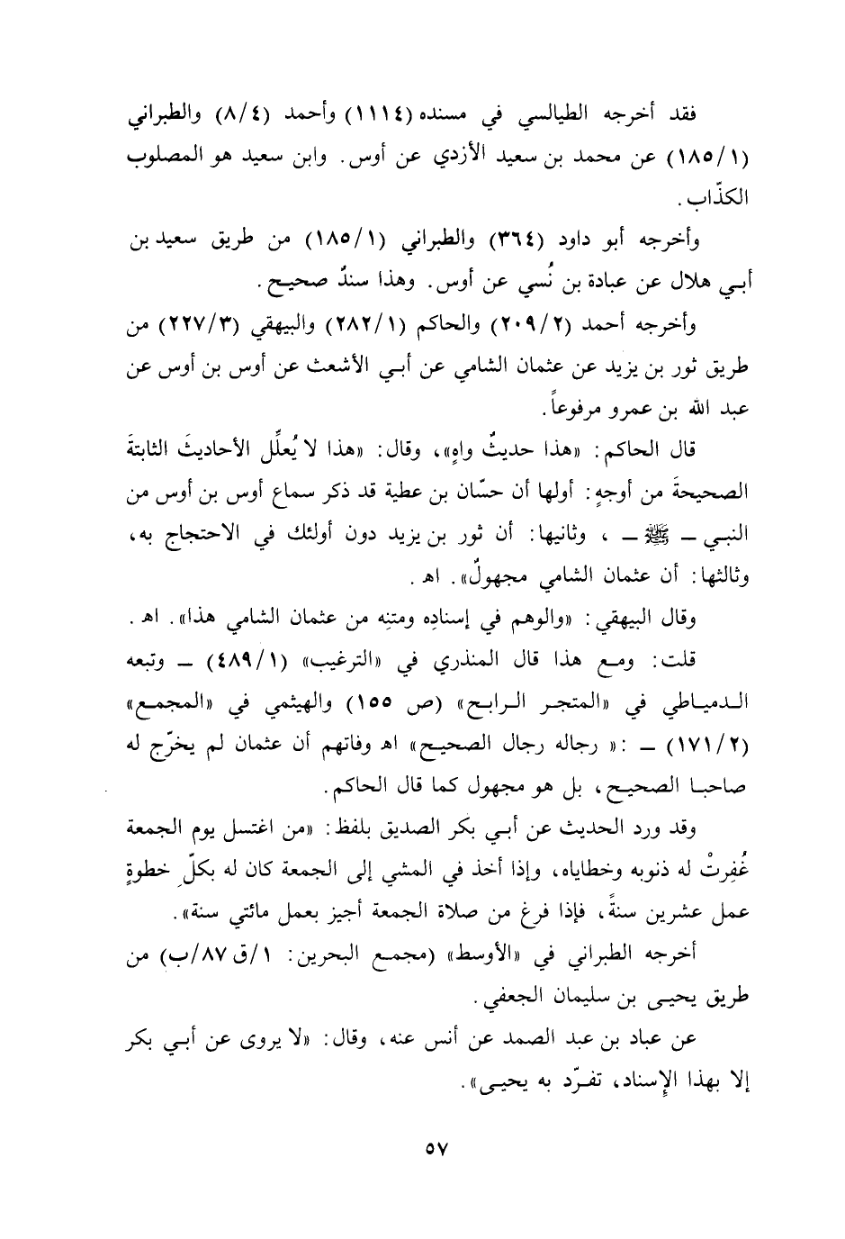 قلت: ومع هذا قال المنذري في "الترغيب" (1/ 489) -وتبعه الدمياطي في "المتجر الرابح" (ص155) والهيثمي في "المجمع" (2/ 171) -: "رجاله رجال الصحيح" أهـ. وفاتهم أن عثمان لم يخرّج له صاحبا الصحيح، بل هو مجهول كما قال الحاكم.