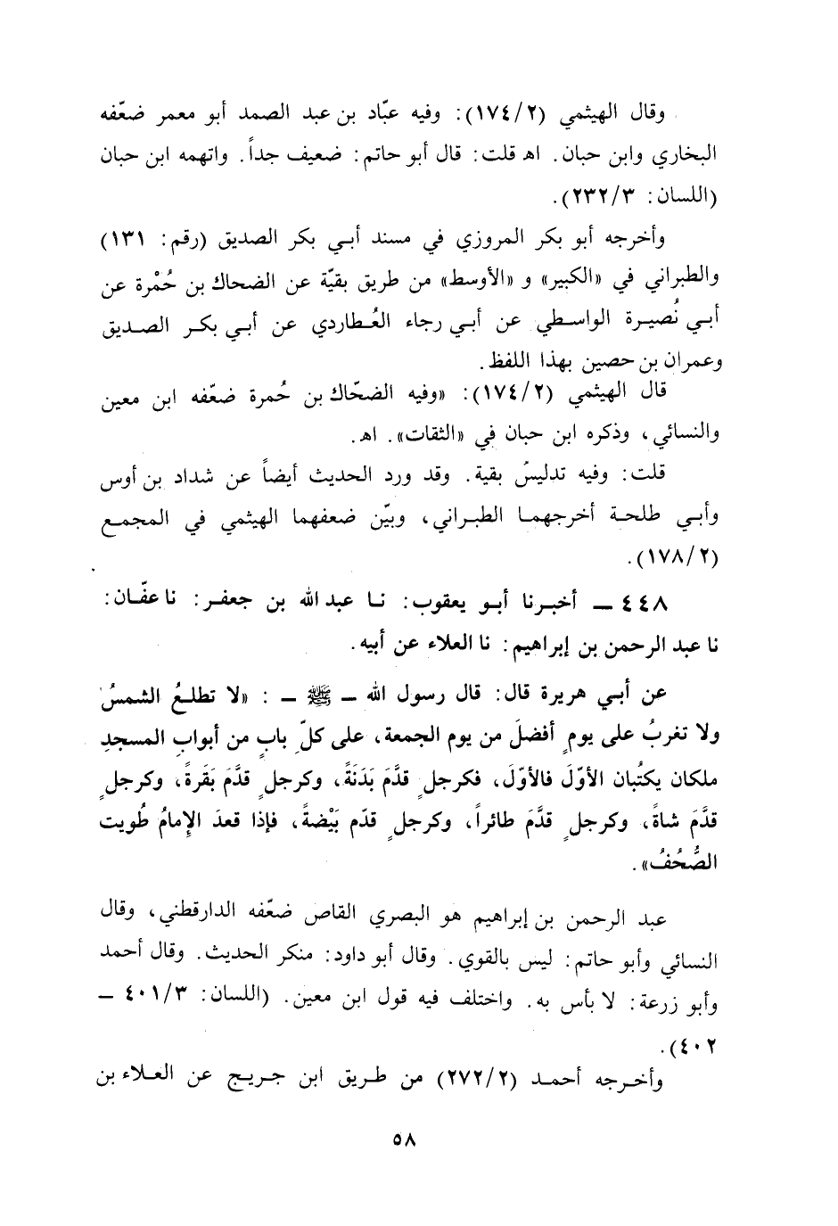 448 - أخبرنا أبو يعقوب: نا عبد الله بن جعفر: نا عفّان: نا عبد الرحمن بن إبراهيم: نا العلاء عن أبيه.