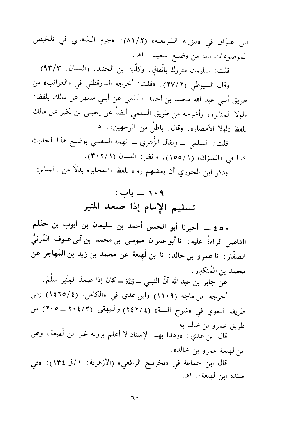 450 - أخبرنا أبو الحسن أحمد بن سليمان بن أيوب بن حذلم القاضي قراءةً عليه: نا أبو عمران موسى بن محمَّد بن أبي عوف المُزَنيُّ الصفّار: نا عمرو بن خالد: نا ابن لَهِيعة عن محمَّد بن زيد بن المُهاجر عن محمَّد بن المُنكدِر.