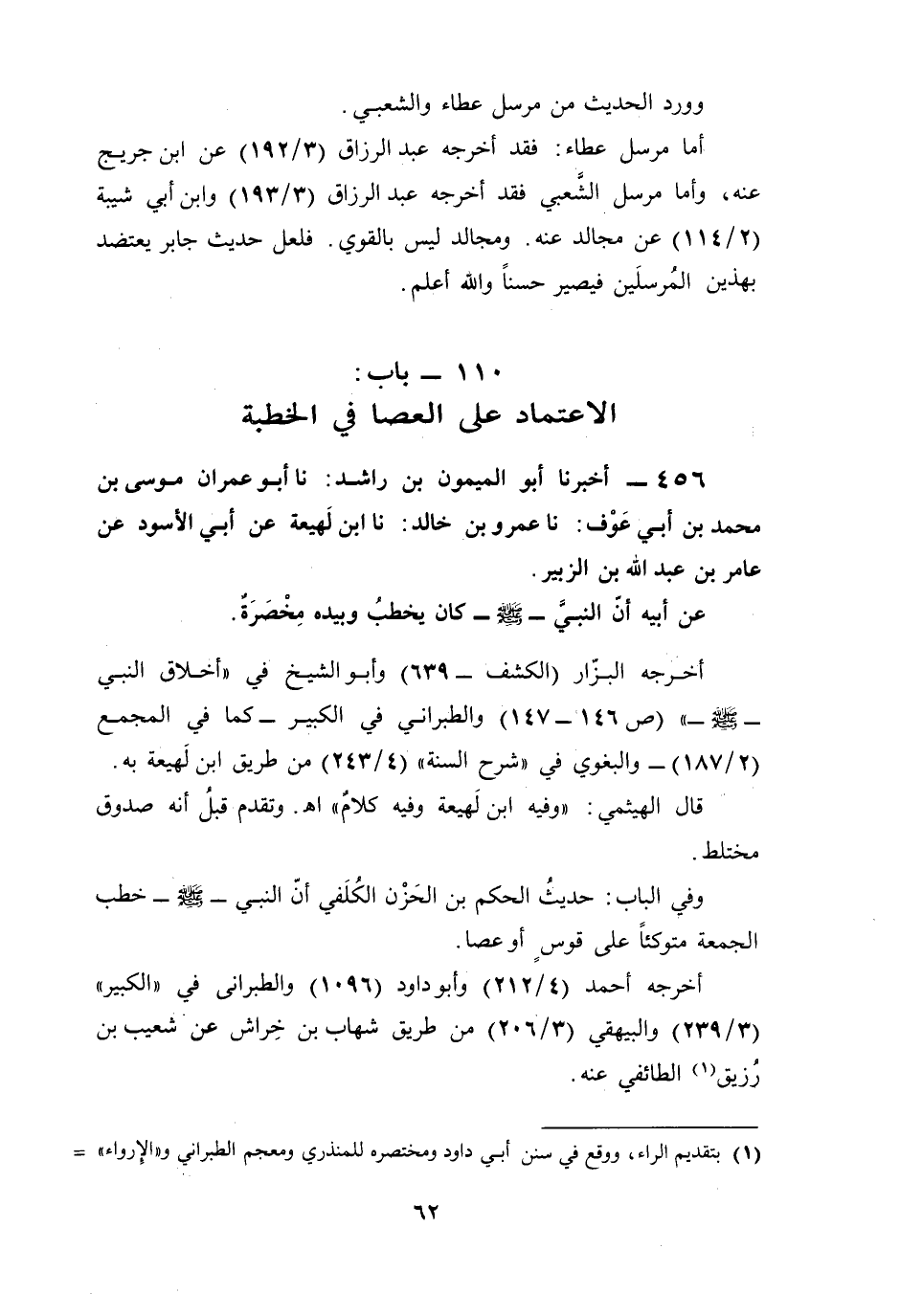 456 - أخبرنا أبو الميمون بن راشد: نا أبو عمران موسى بن محمَّد بن أبي عَوْف: نا عمرو بن خالد: نا ابن لَهيعة عن أبي الأسود عن عامر بن عبد الله بن الزبير.
