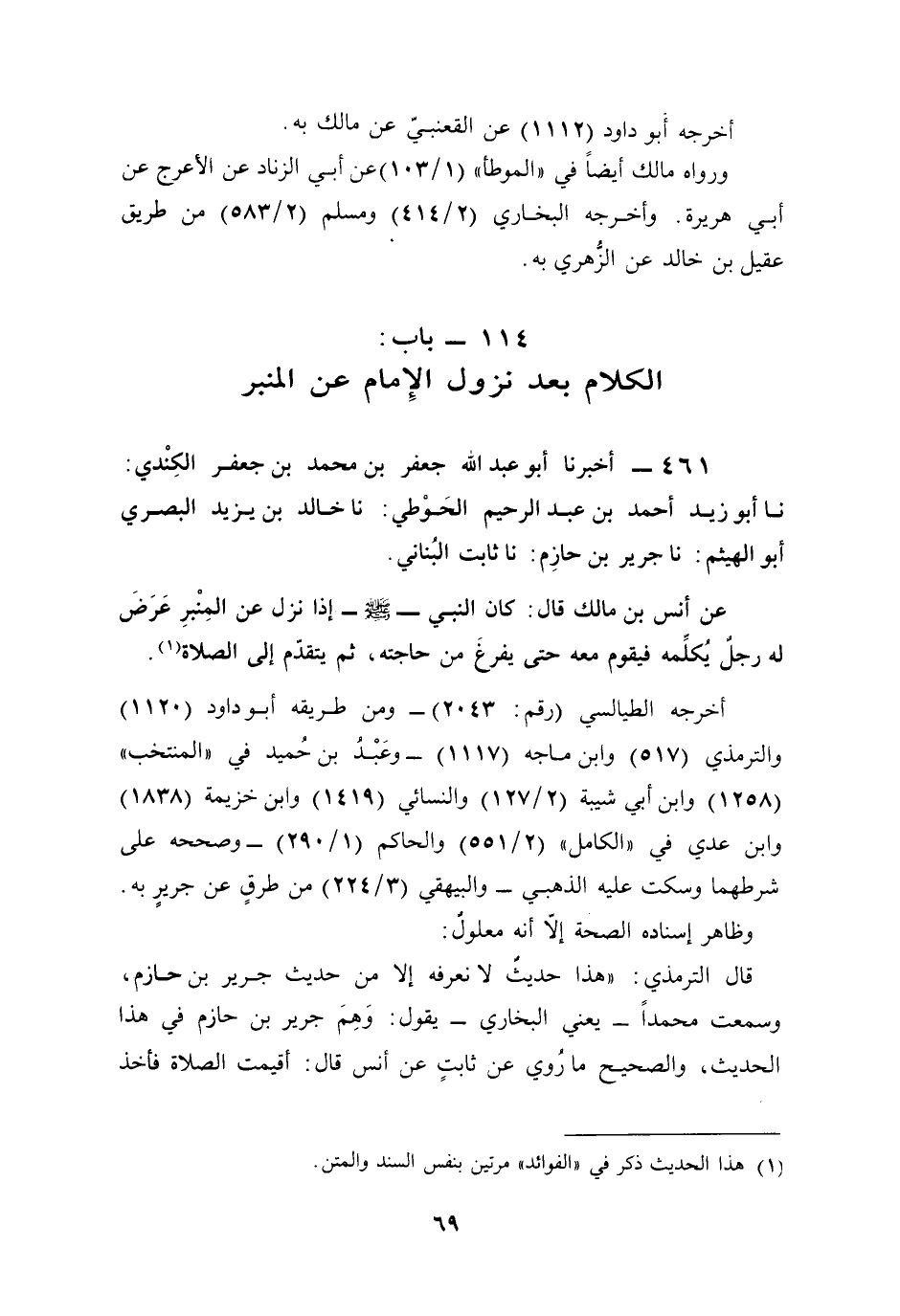 461 - أخبرنا أبو عبد الله جعفر بن محمَّد بن جعفر الكِنْدي: نا أبو زيد أحمد بن عبد الرحيم الحَوْطي: نا خالد بن يزيد البصري أبو الهيثم: نا جرير بن حازِم: نا ثابت البُناني.