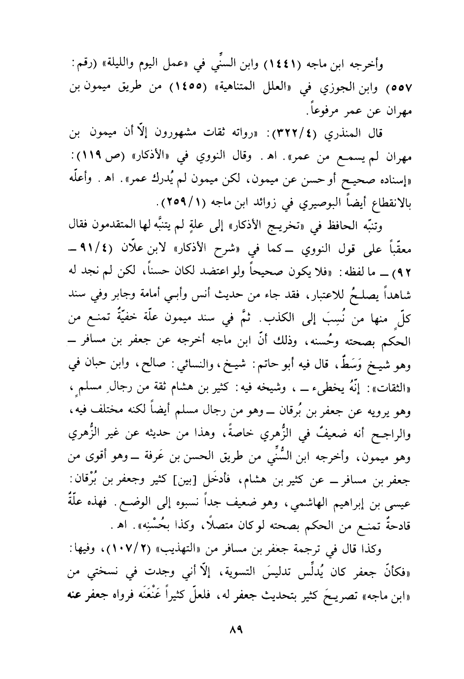 وكذا قال في ترجمة جعفر بن مسافر من "التهذيب" (2/ 107)، وفيها: "فكأنّ جعفر كان يُدلِّس تدليسَ التسوية، إلَّا أني وجدت في نسختي من "ابن ماجه" تصريحَ كثير بتحديث جعفر له، فلعلّ كثيرًا عَنْعَنَه فرواه جعفر عنه