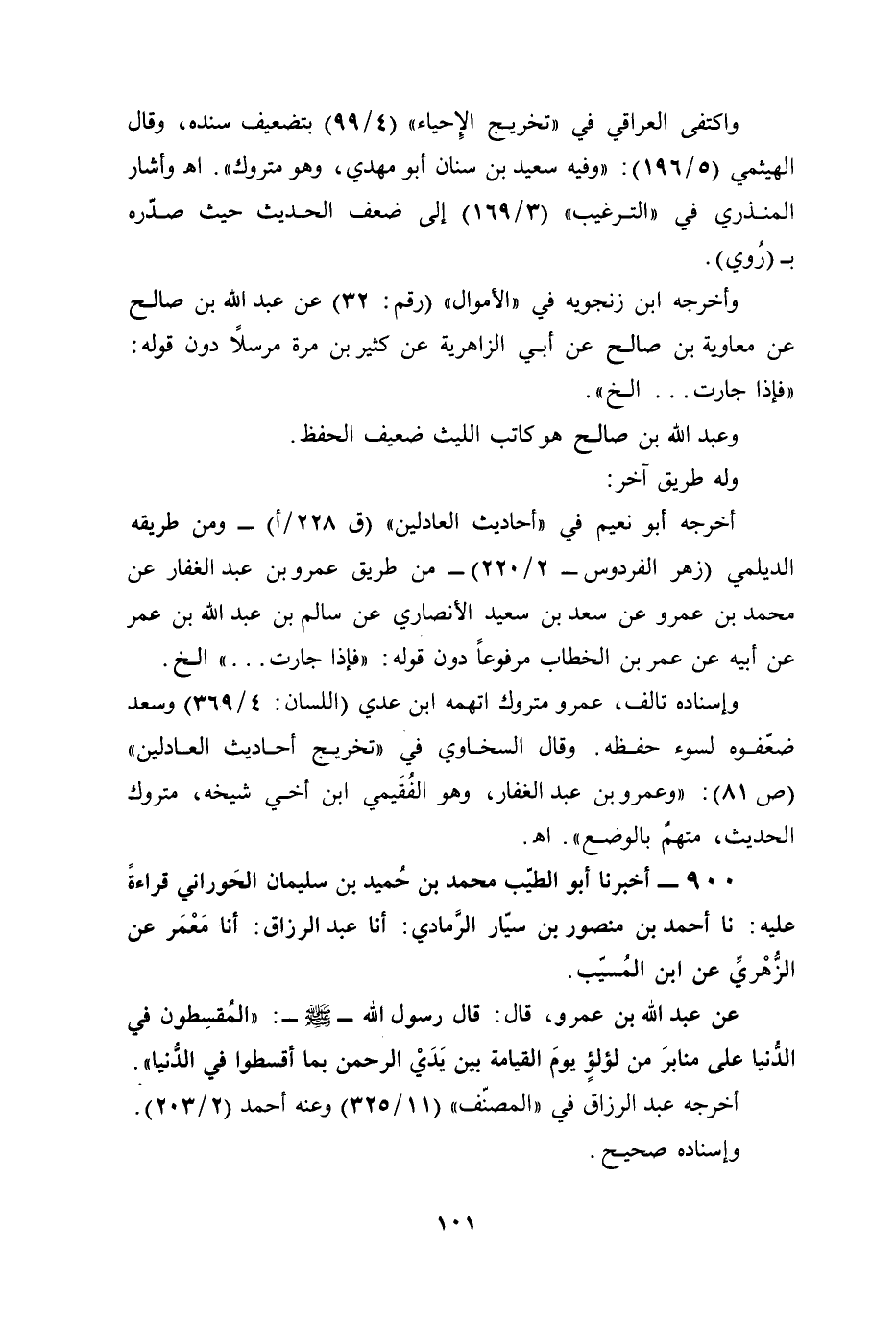 900 - أخبرنا أبو الطيّب محمد بن حُميد بن سليمان الحَوراني قراءةً عليه: نا أحمد بن منصور بن سيّار الرَّمادي: أنا عبد الرزاق: أنا مَعْمَر عن الزُّهْريِّ عن ابن المُسيّب.