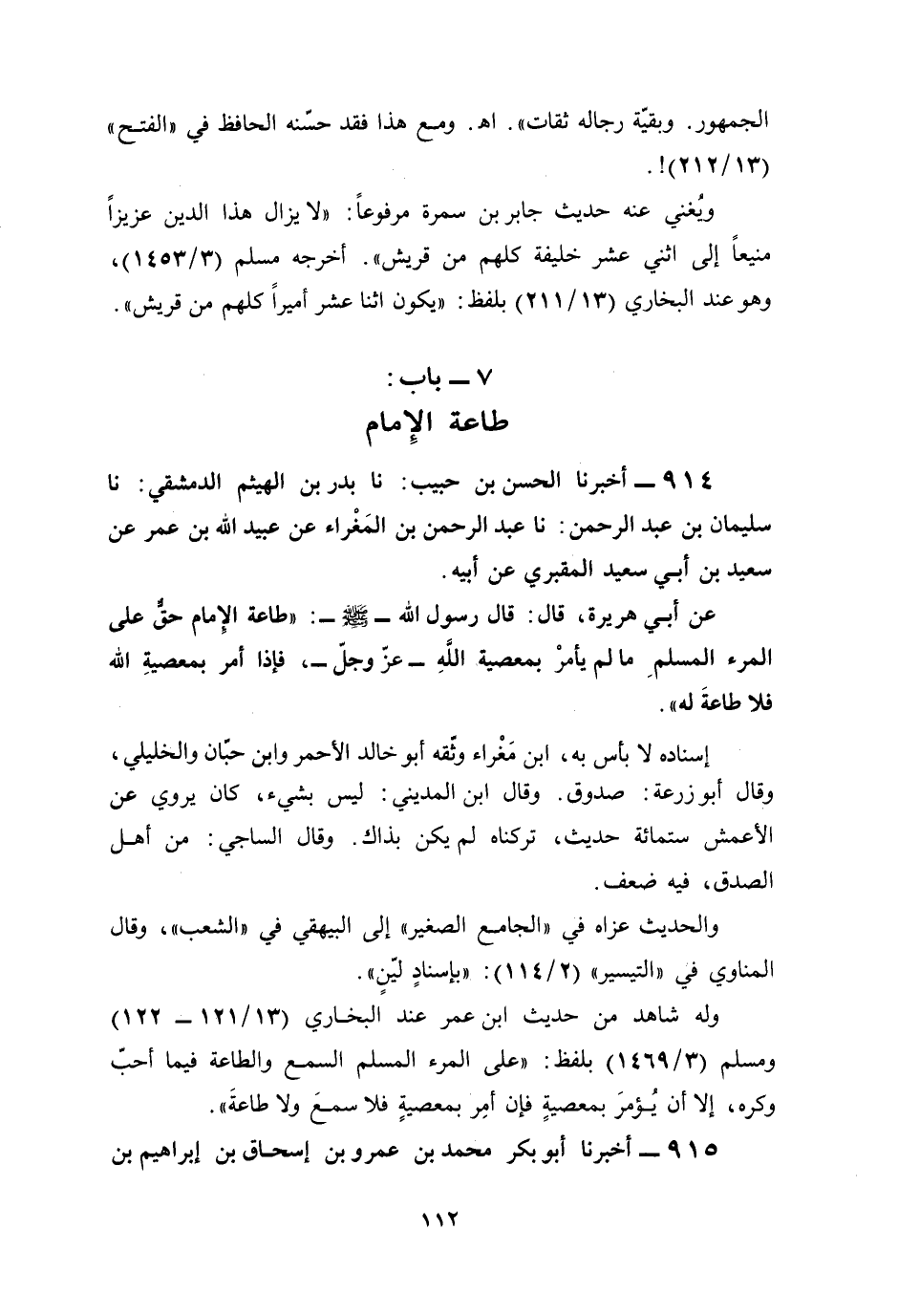914 - أخبرنا الحسن بن حبيب: نا بدر بن الهيثم الدمشقي: نا سليمان بن عبد الرحمن: نا عبد الرحمن بن المَغْراء عن عبيد الله بن عمر عن سعيد بن أبي سعيد المقبري عن أبيه.