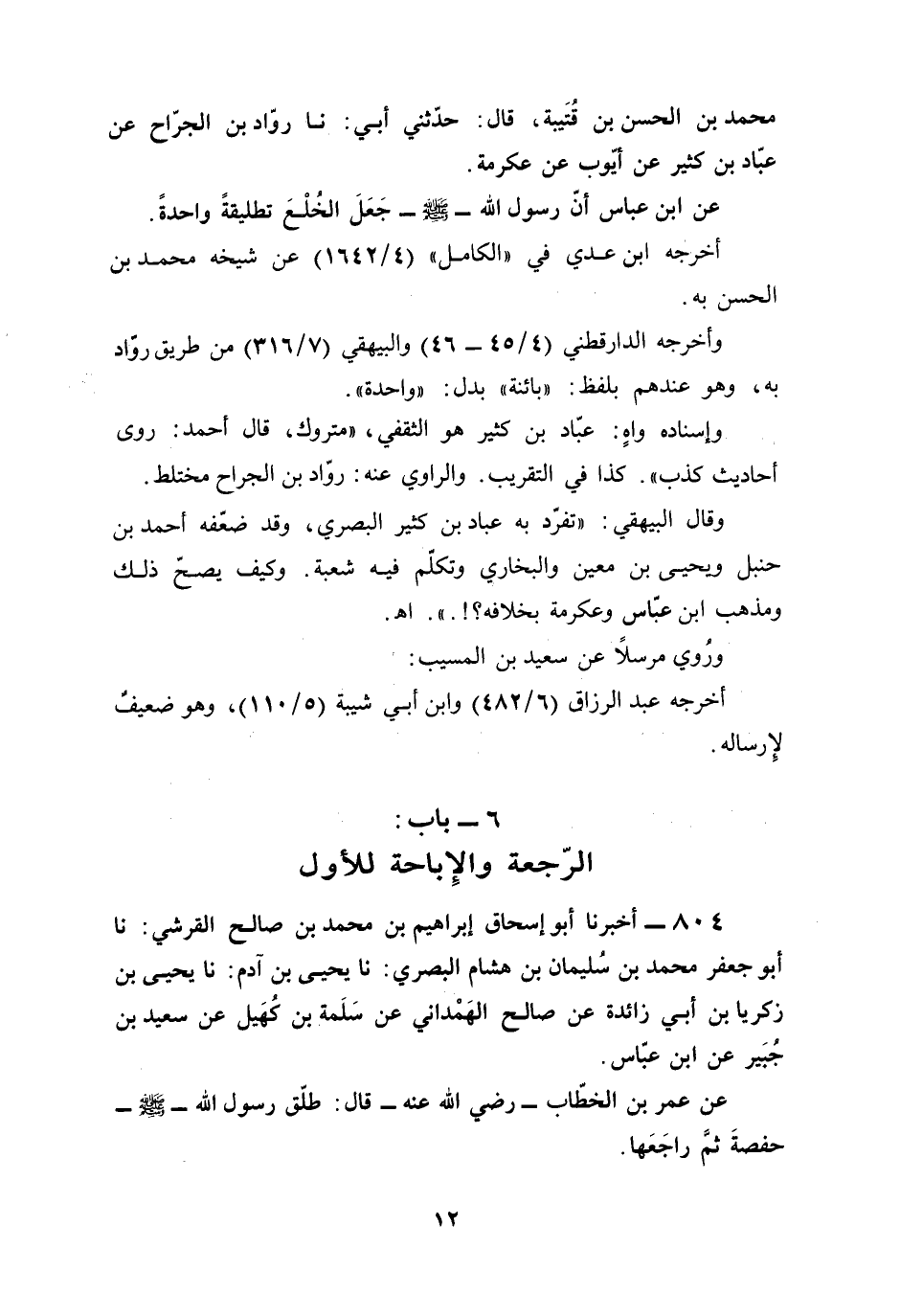 عن ابن عباس أنّ رسول الله - صلى الله عليه وسلم - جَعَلَ الخلْعَ تطليقةً واحدةً.