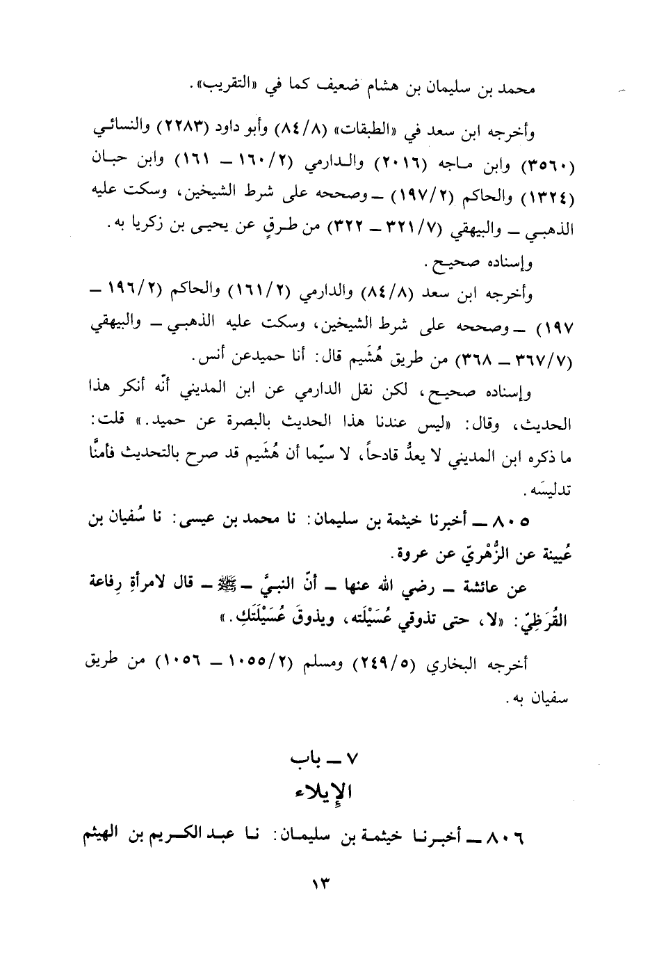 805 - أخبرنا خيثمة بن سليمان: نا محمد بن عيسى: نا سُفيان بن عُيينة عن الزُّهْريّ عن عروة.