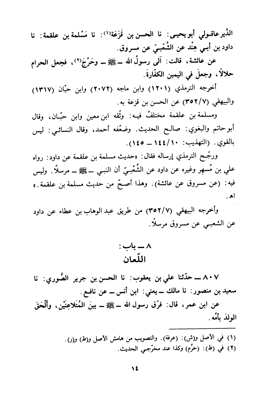 807 - حدّثنا علي بن يعقوب: نا الحسن بن جرير الصُّوري: نا سعيد بن منصور: نا مالك -يعني: ابن أنس- عن نافع.