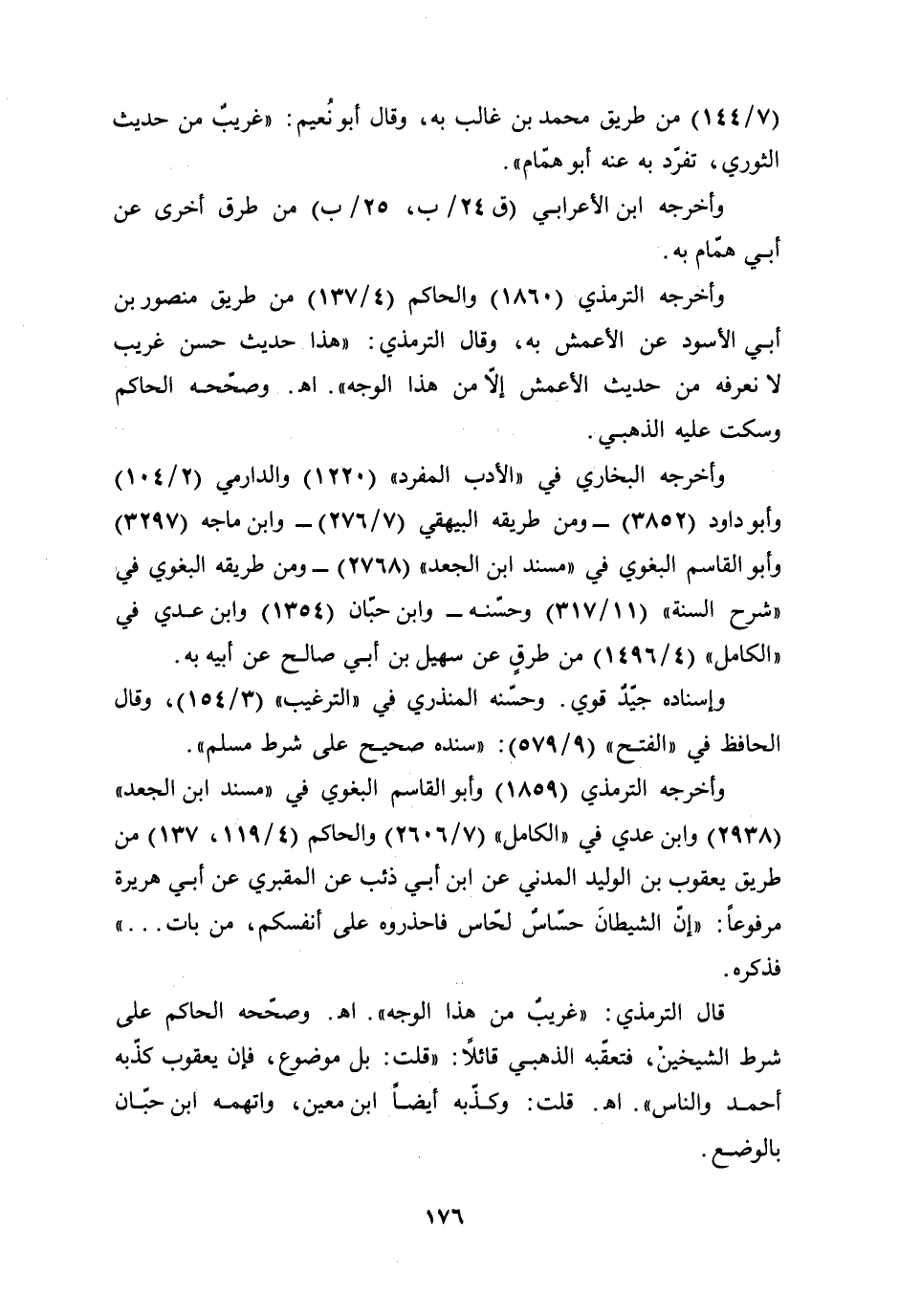(7/ 144) من طريق محمد بن غالب به، وقال أبو نُعيم: "غريبٌ من حديث الثوري، تفرّد به عنه أبو همّام".