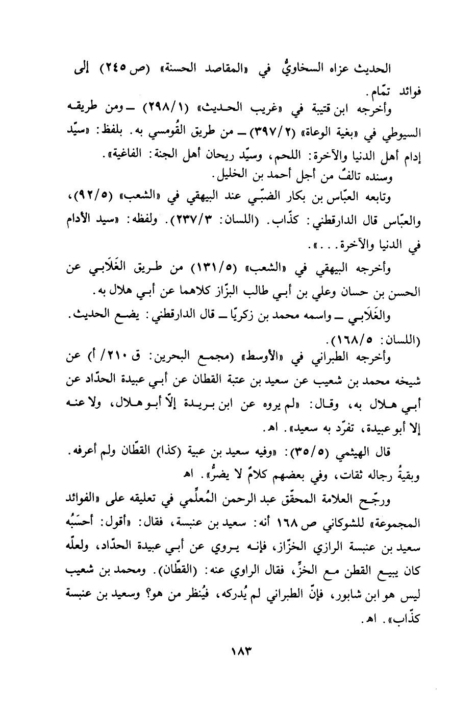 ورجّح العلامة المحقّق عبد الرحمن المُعلِّمي في تعليقه على "الفوائد المجموعة" للشوكاني ص 168 أنه: سعيد بن عنبسة، فقال: "أقول: أحسَبُه سعيد بن عنبسة الرازي الخزّاز، فإنه يروي عن أبي عبيدة الحدّاد، ولعلّه كان يبيع القطن مع الخزِّ، فقال الراوي عنه: (القطّان). ومحمد بن شعيب ليس هو ابن شابور، فإنّ الطبراني لم يُدركه، فيُنظر من هو؟ وسعيد بن عنبسة كذّاب". أهـ.