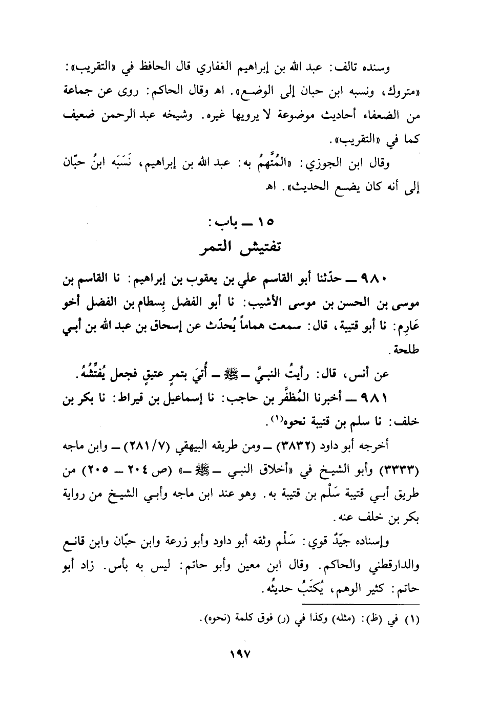 981 - أخبرنا المُظفَّر بن حاجب: نا إسماعيل بن قيراط: نا بكر بن خلف: نا سلم بن قتيبة نحوه (¬1).