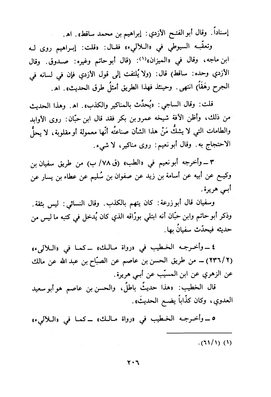 إسنادًا. وقال أبو الفتح الأزدي: إبراهيم بن محمد ساقط". أهـ.