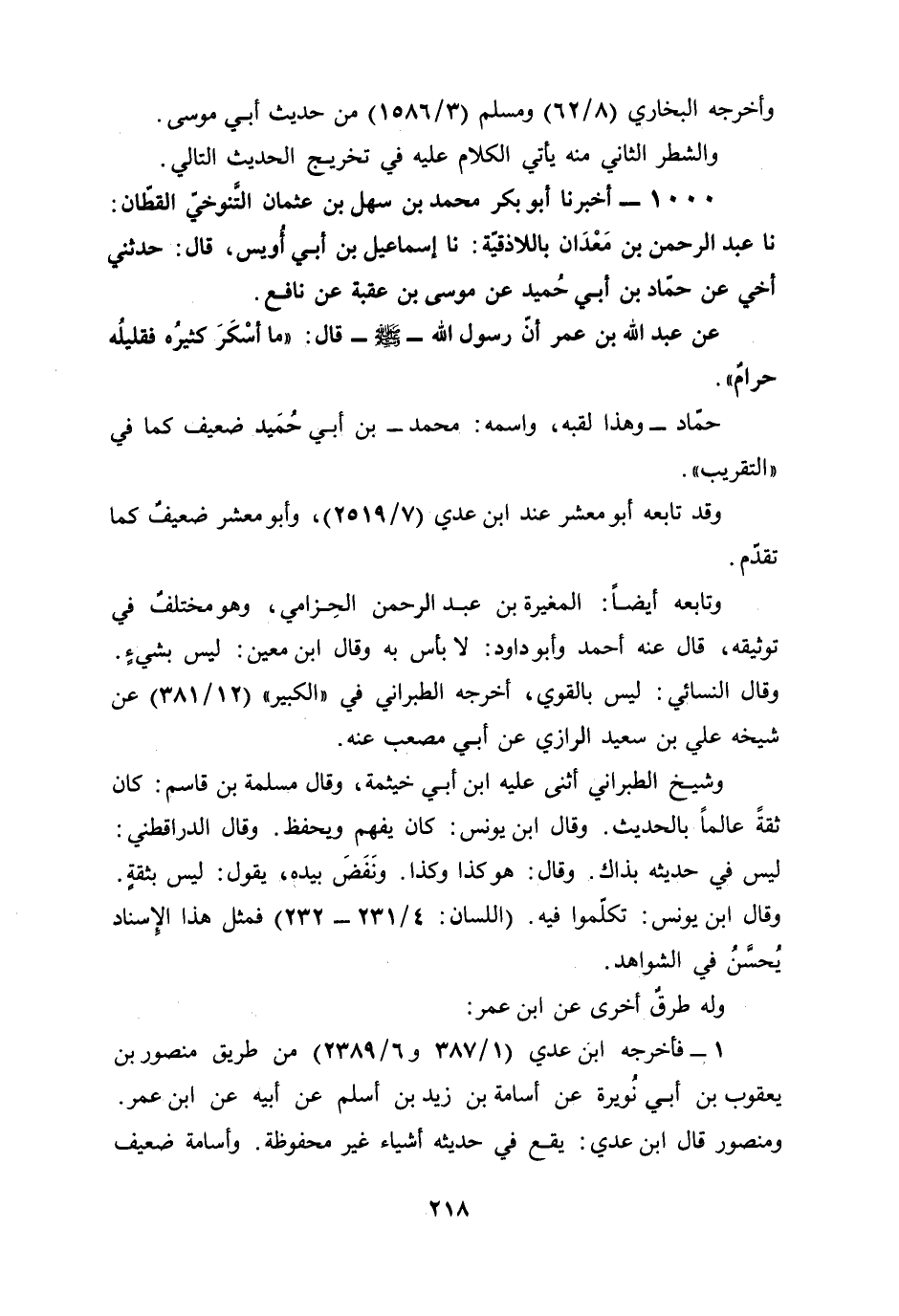 1000 - أخبرنا أبو بكر محمد بن سهل بن عثمان التَّنوخيّ القطّان: نا عبد الرحمن بن مَعْدَان باللاذقيّة: نا إسماعيل بن أبي أُويس، قال: حدثني أخي عن حمّاد بن أبط حُميد عن موسى بن عقبة عن نافع.