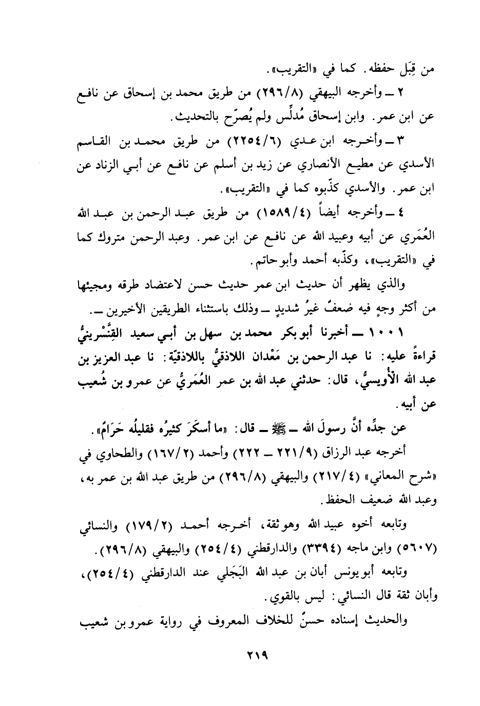 2 - وأخرجه البيهقي (8/ 296) من طريق محمد بن إسحاق عن نافع عن ابن عمر. وابن إسحاق مُدلِّس ولم يُصرّح بالتحديث.